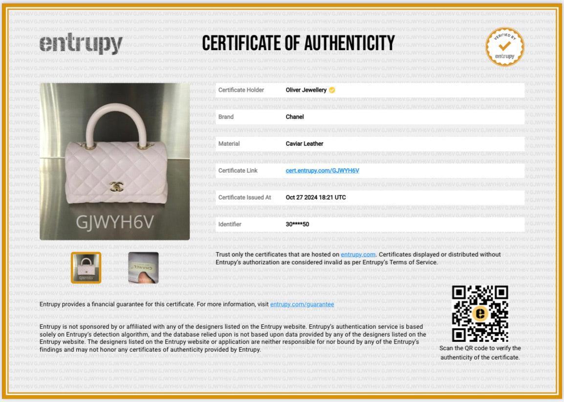 Authenticity Card, Strap, Entrupy Certificate of Appraisal