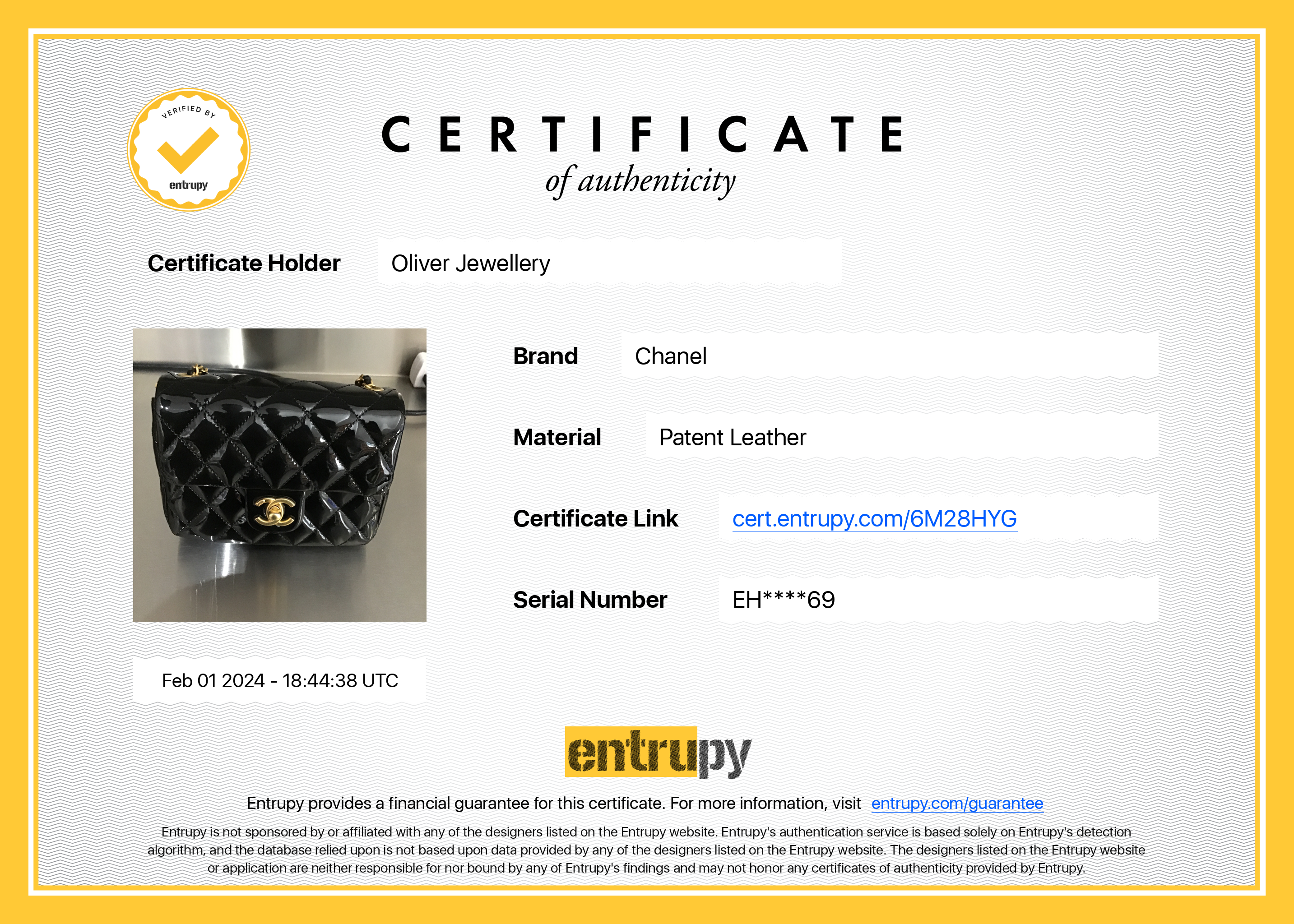 Box, Dust Bag, Authenticity Card, Entrupy Certificate of Authenticity