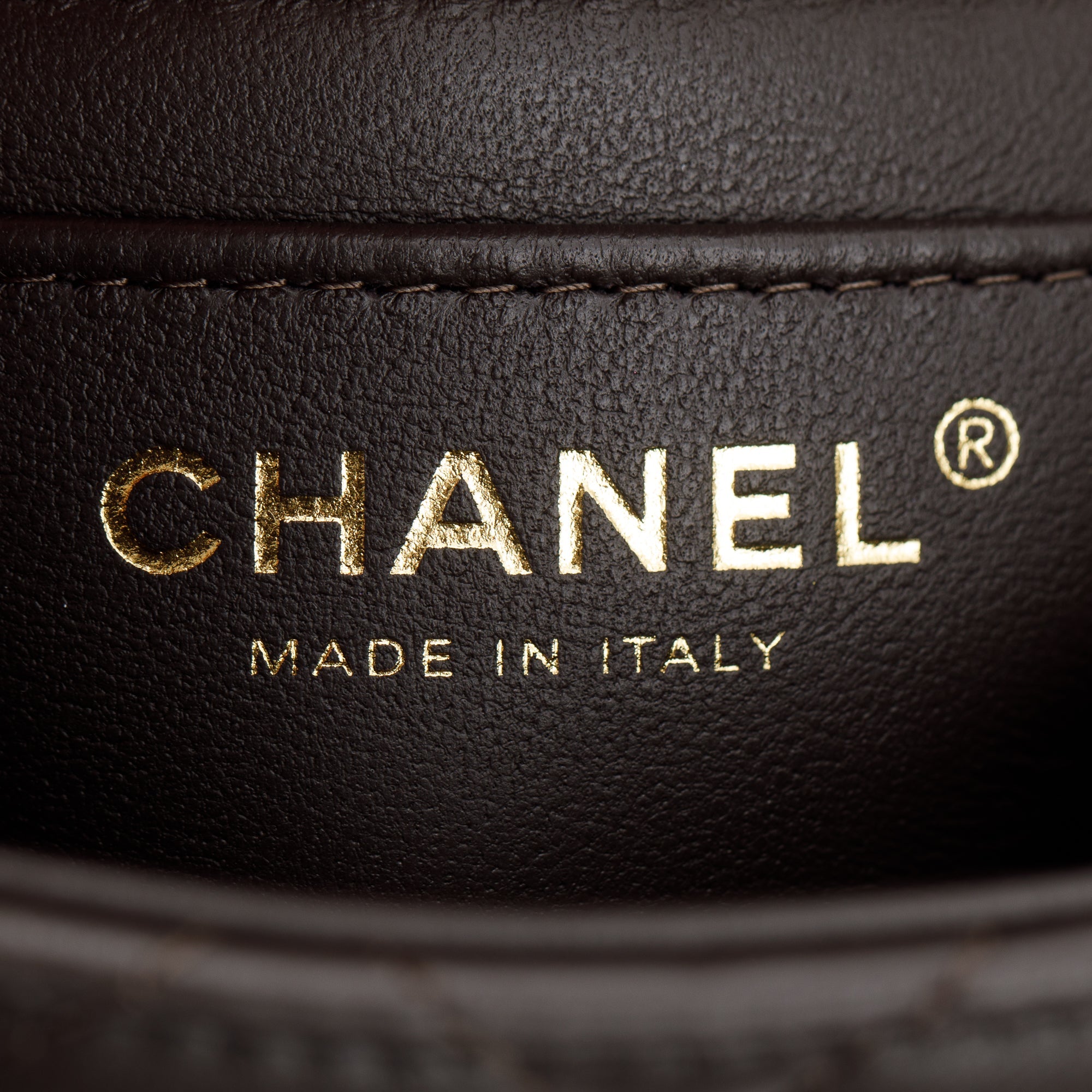 2023 Brown Quilted Lambskin Leather Mini Top Handle Rectangular Flap Bag w/ Box