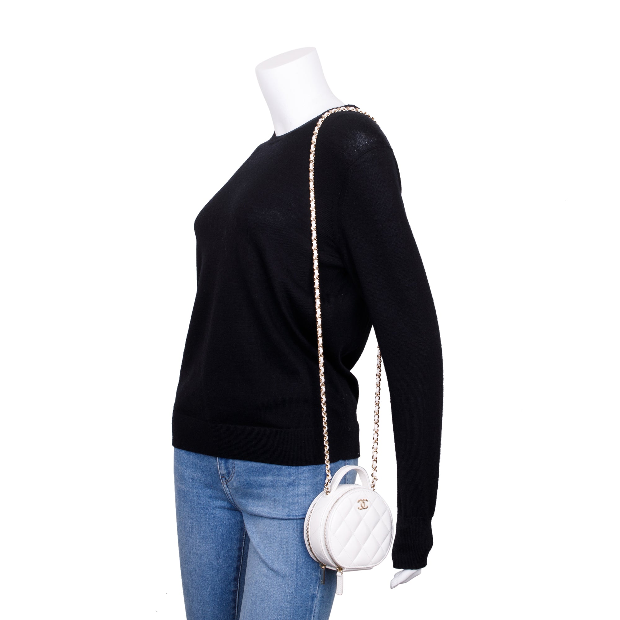 2023 White Lambskin Leather Handle with Care Round Vanity Case w/ Box