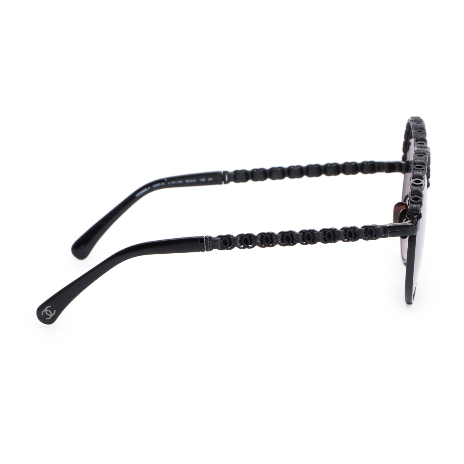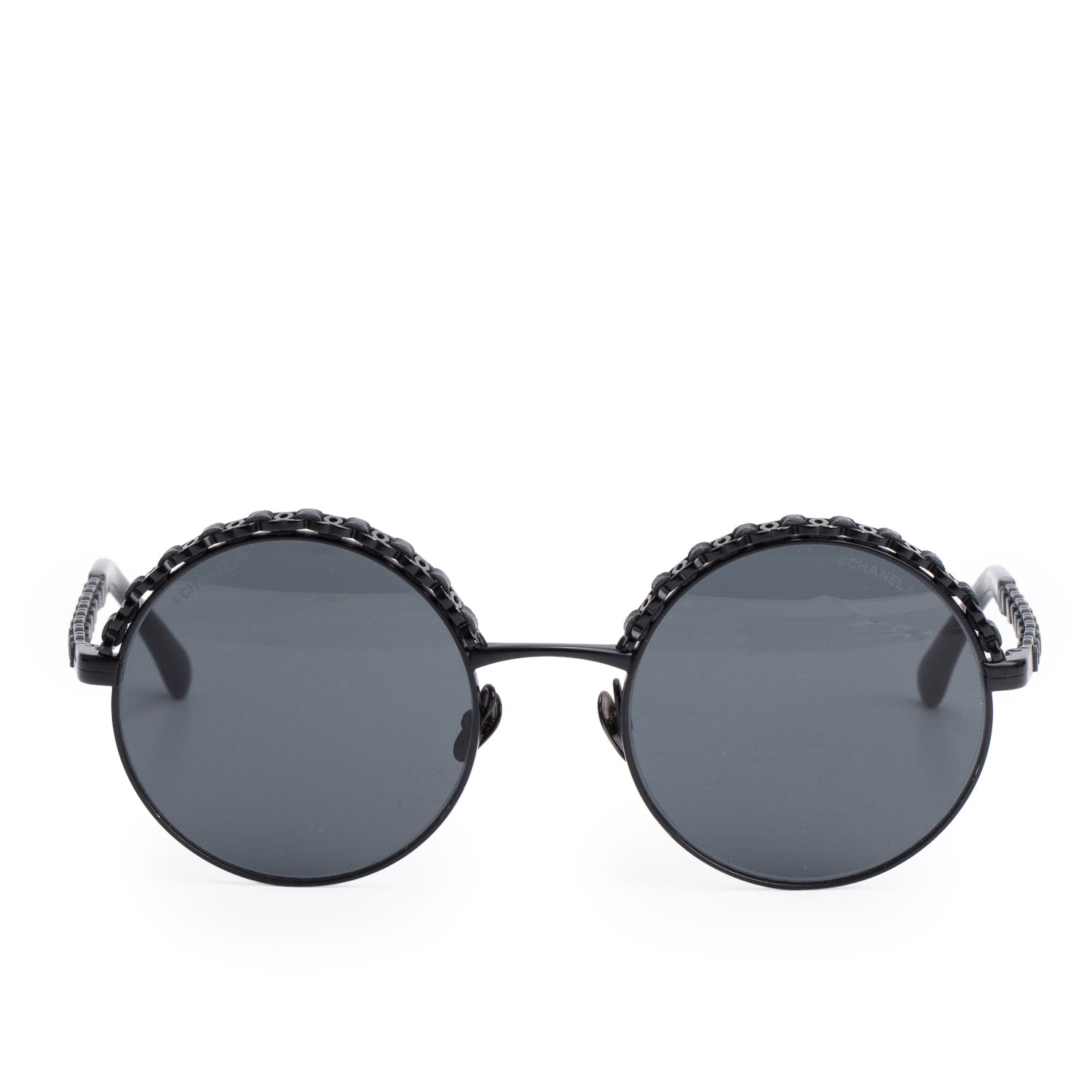 4265Q Black Metal Calfskin Round Sunglasses w/ Case