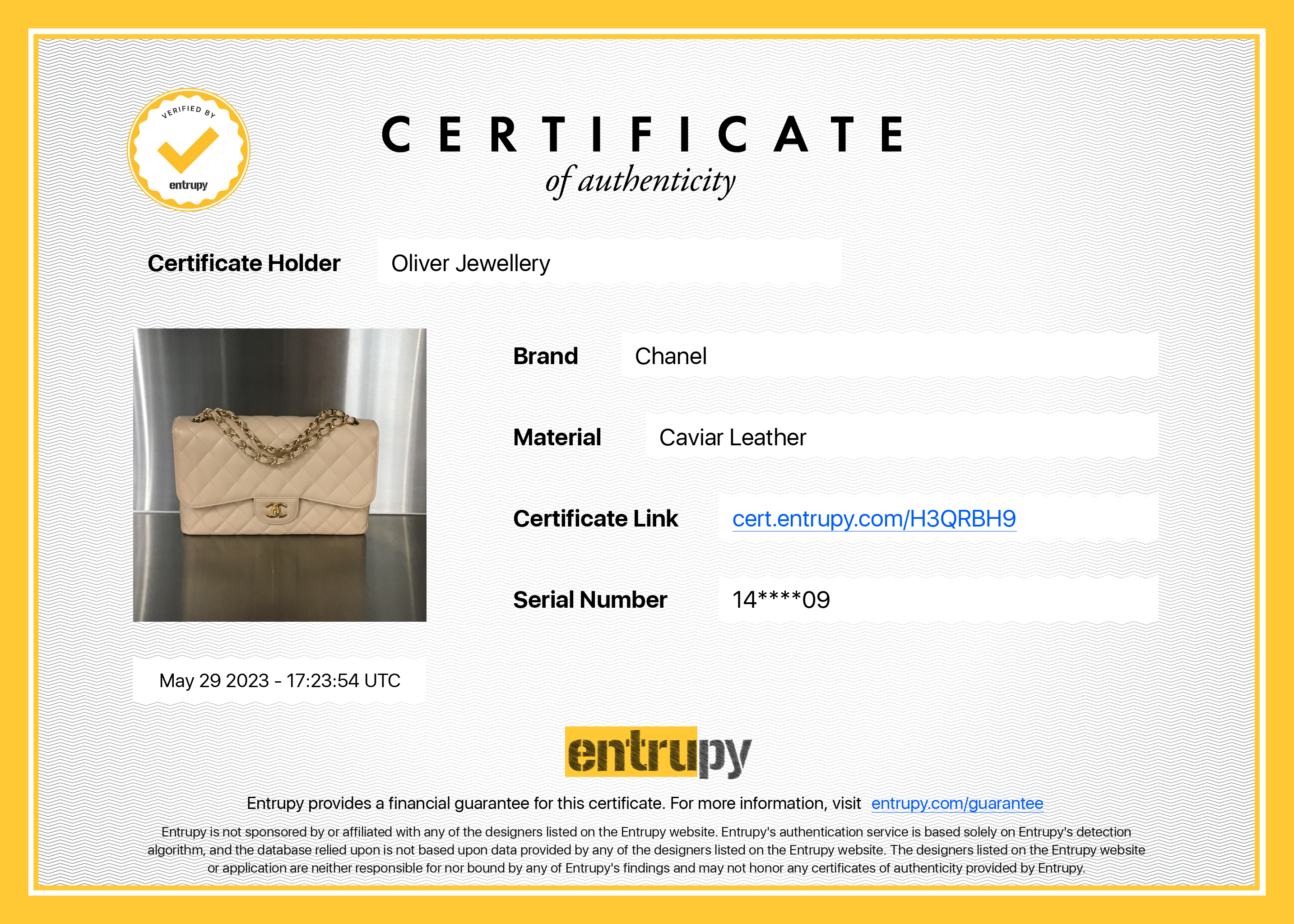 Included Items: Original Chanel Dust Bag, Authenticity Card & Entrupy Certificate of Authenticity #: H3QRBH9