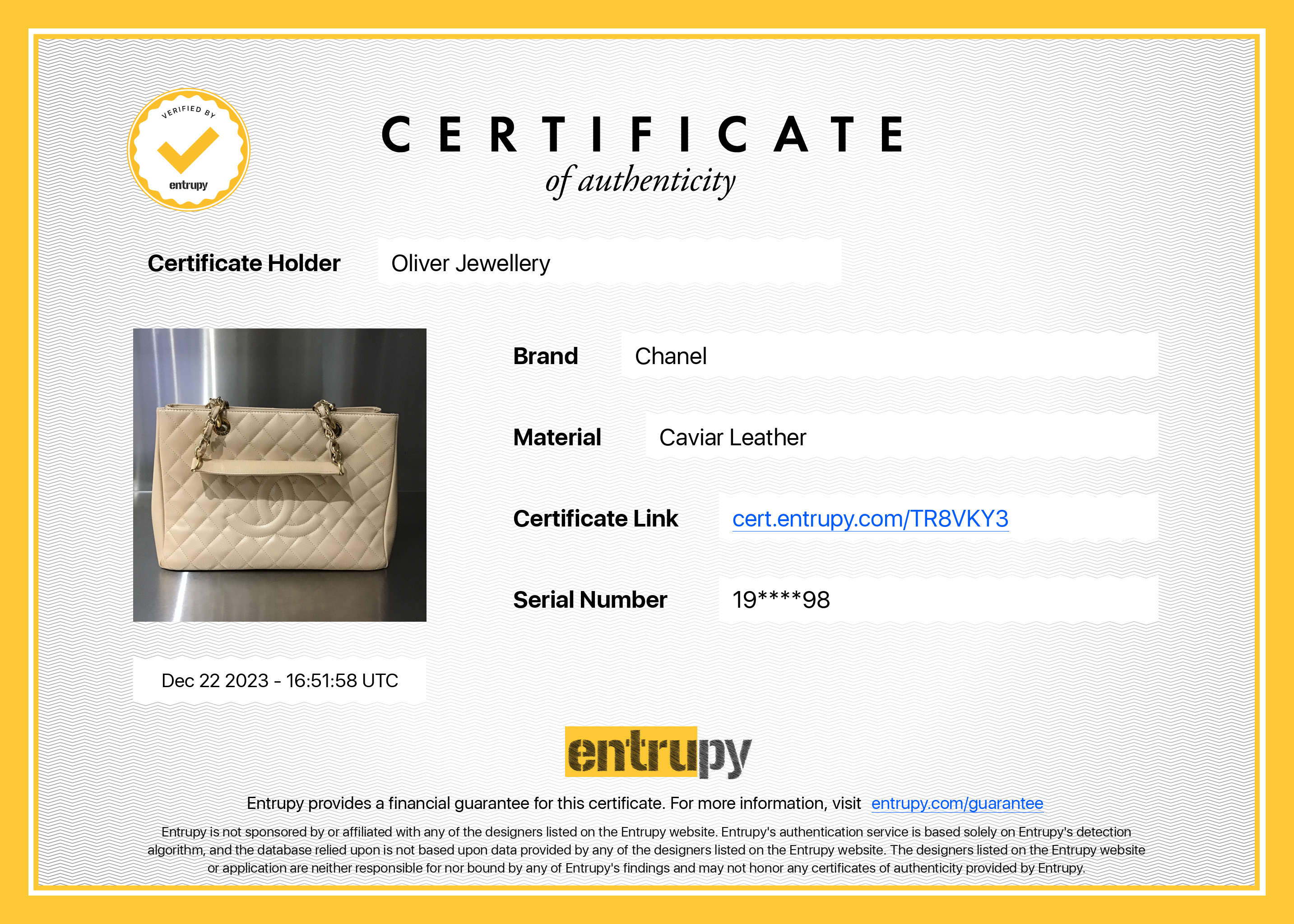 Beige Caviar Leather Grand Shopping Tote (GST)