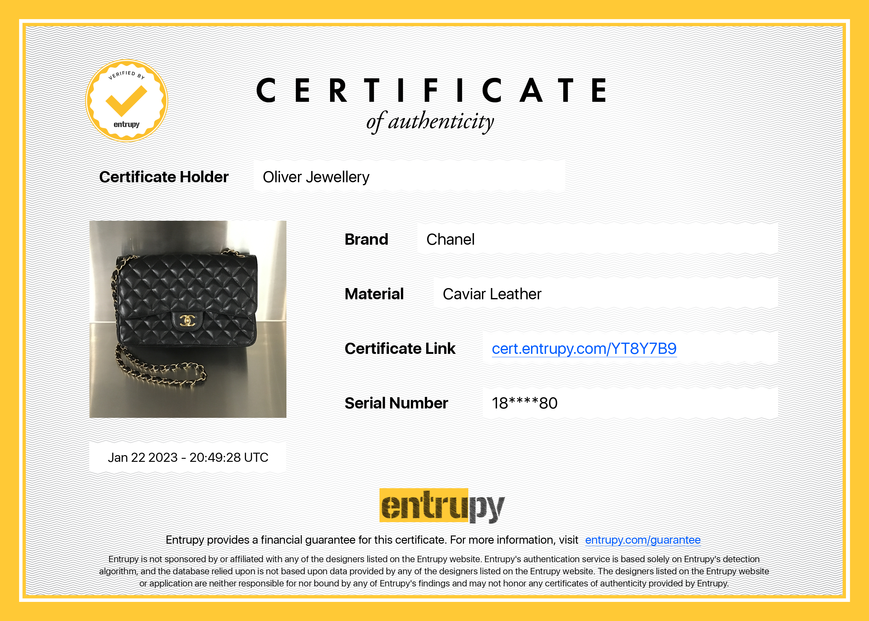 Included Items: Original Chanel Box, Authenticity Card, Booklet & Entrupy Certificate of Authenticity #: YT8Y7B9