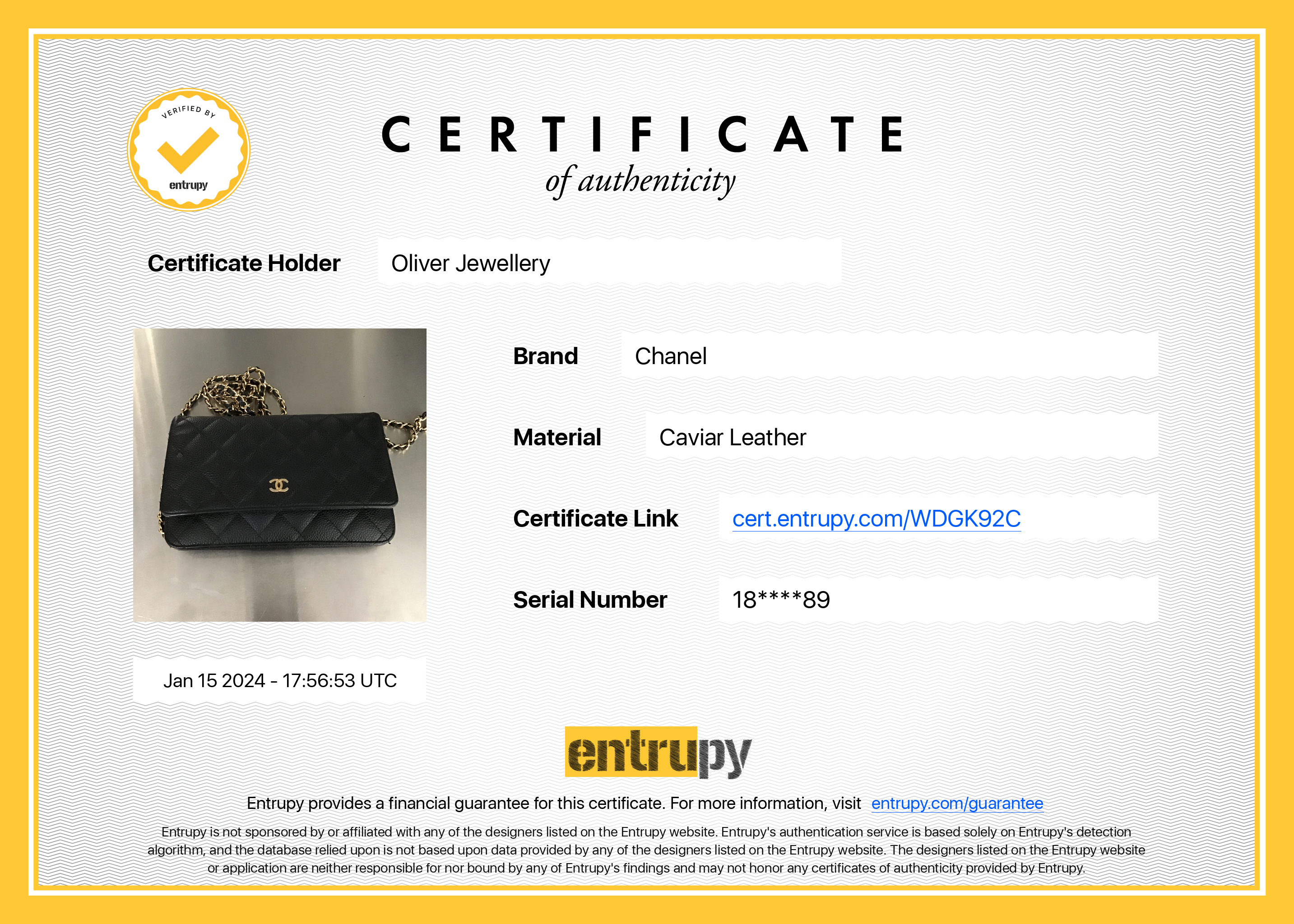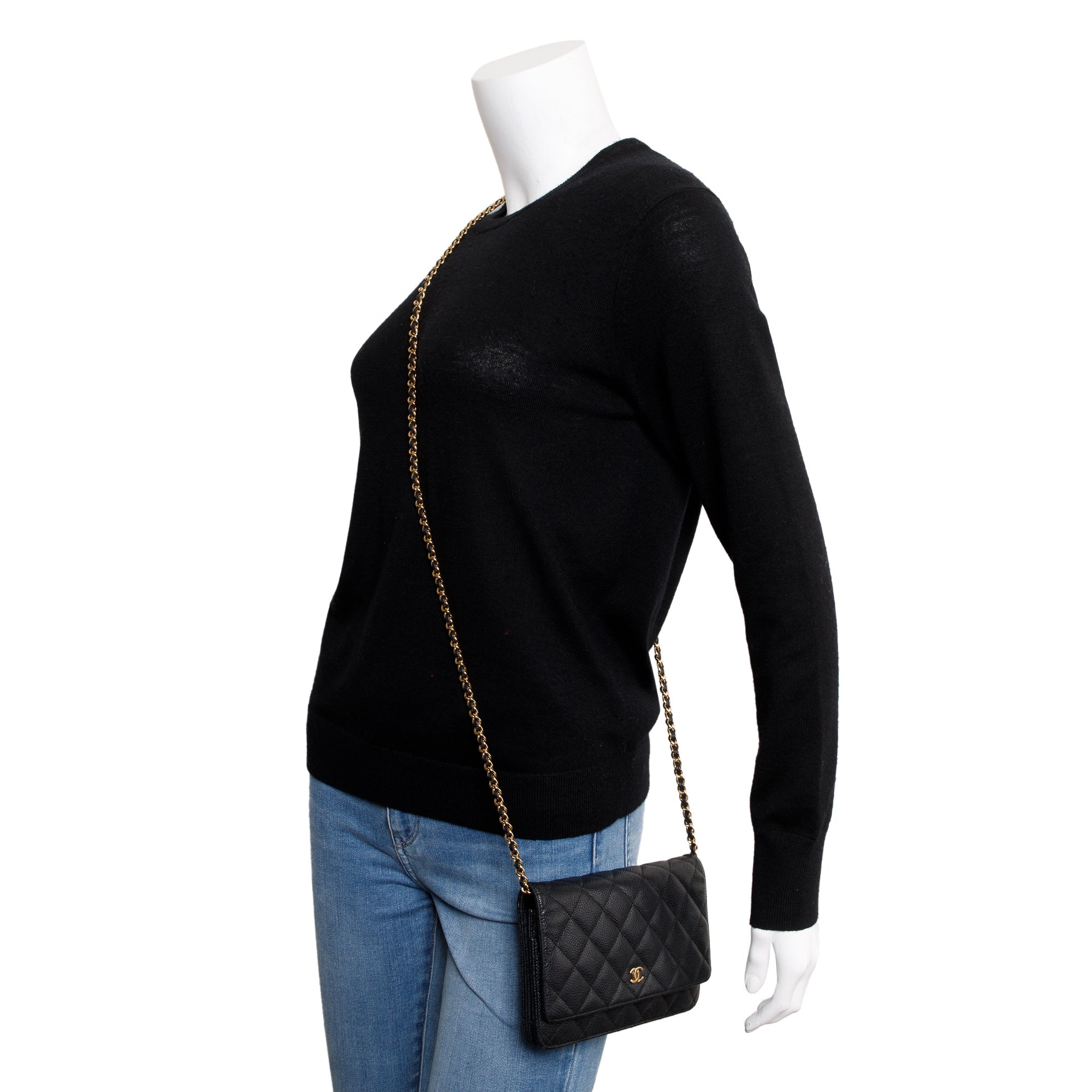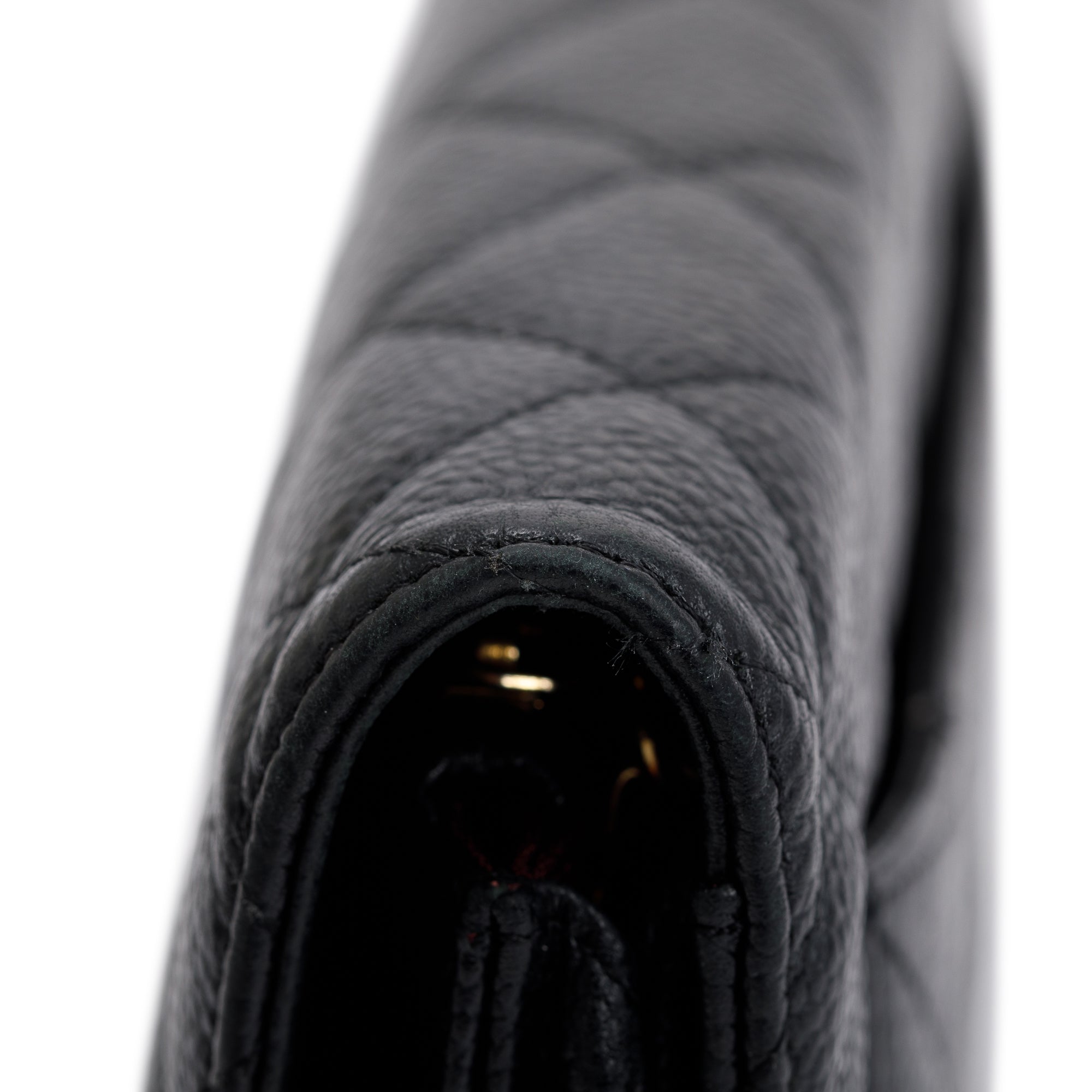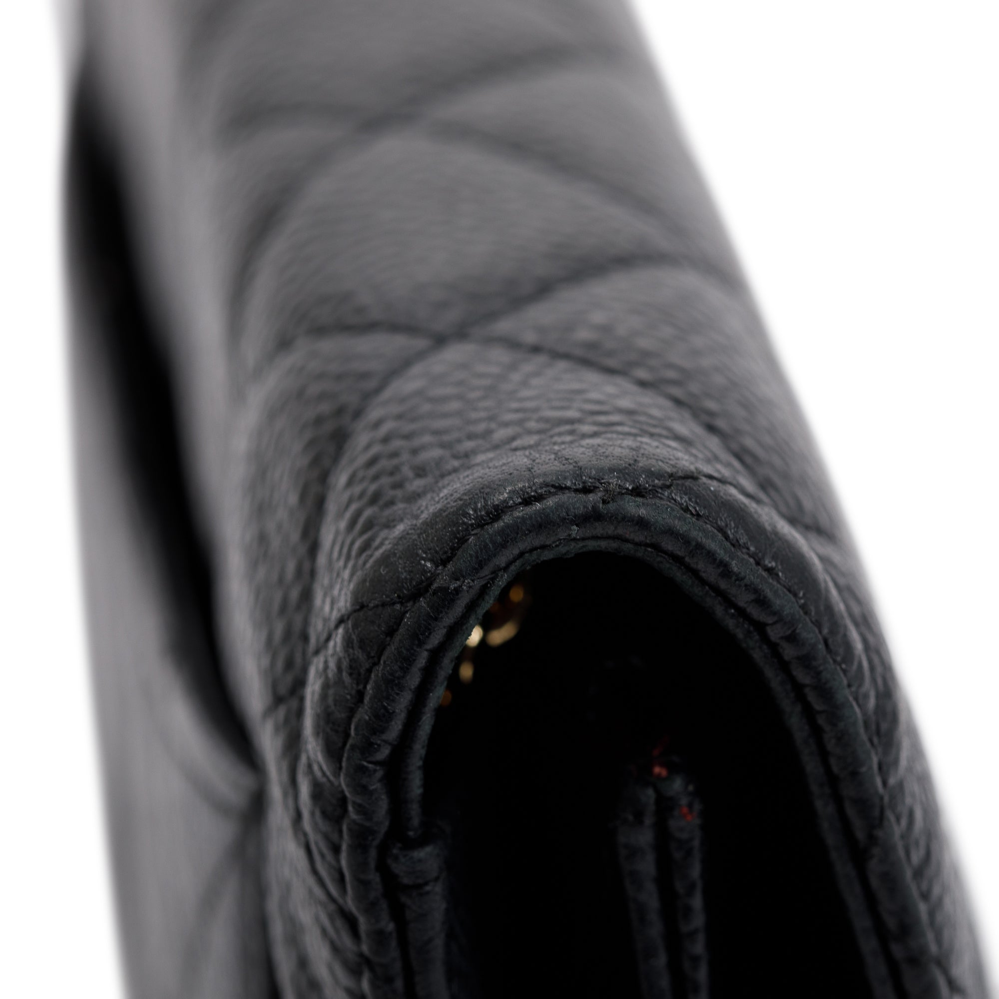 Black Caviar Leather Classic Wallet on Chain w/ Box