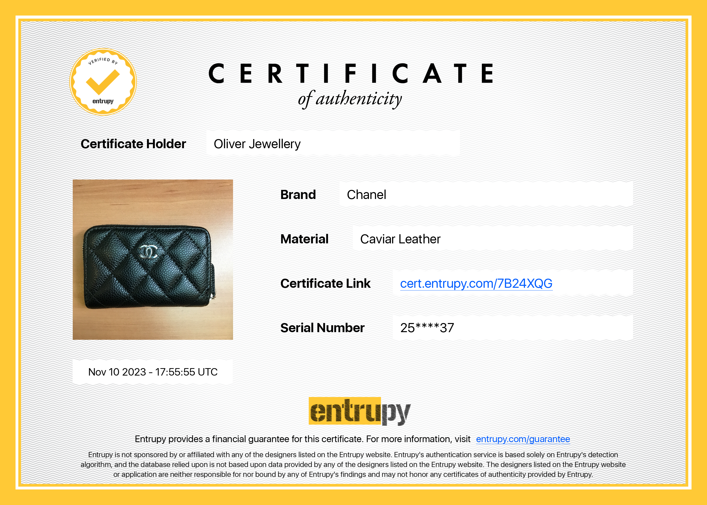 Box, Authenticity Card, Receipt, Dust Bag, Entrupy Certificate of Authenticity