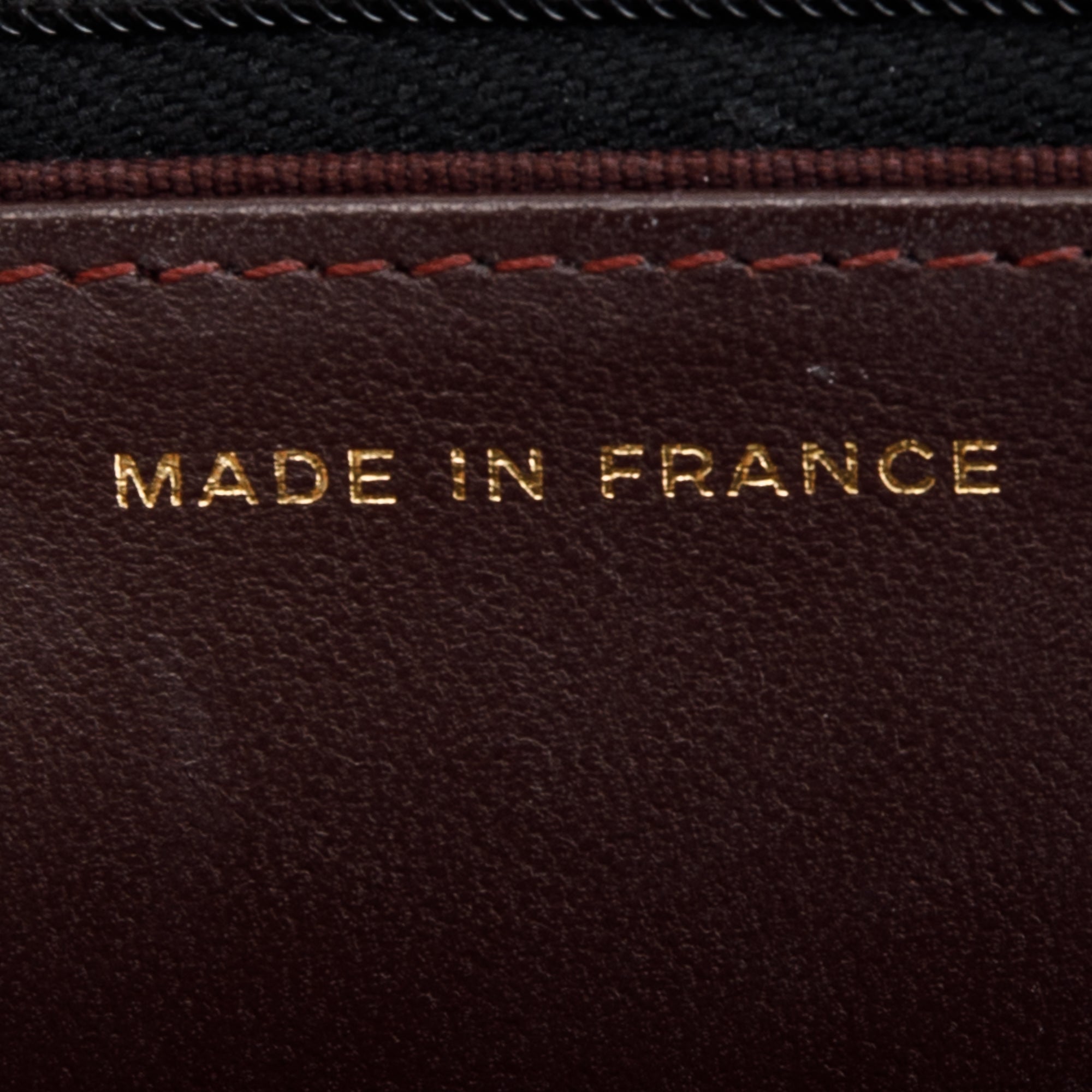 Condition: Very Good; slight surface scratches at hardware; slight creasing at exterior leather; slight scratches at flap underside and interior leather; clean interior