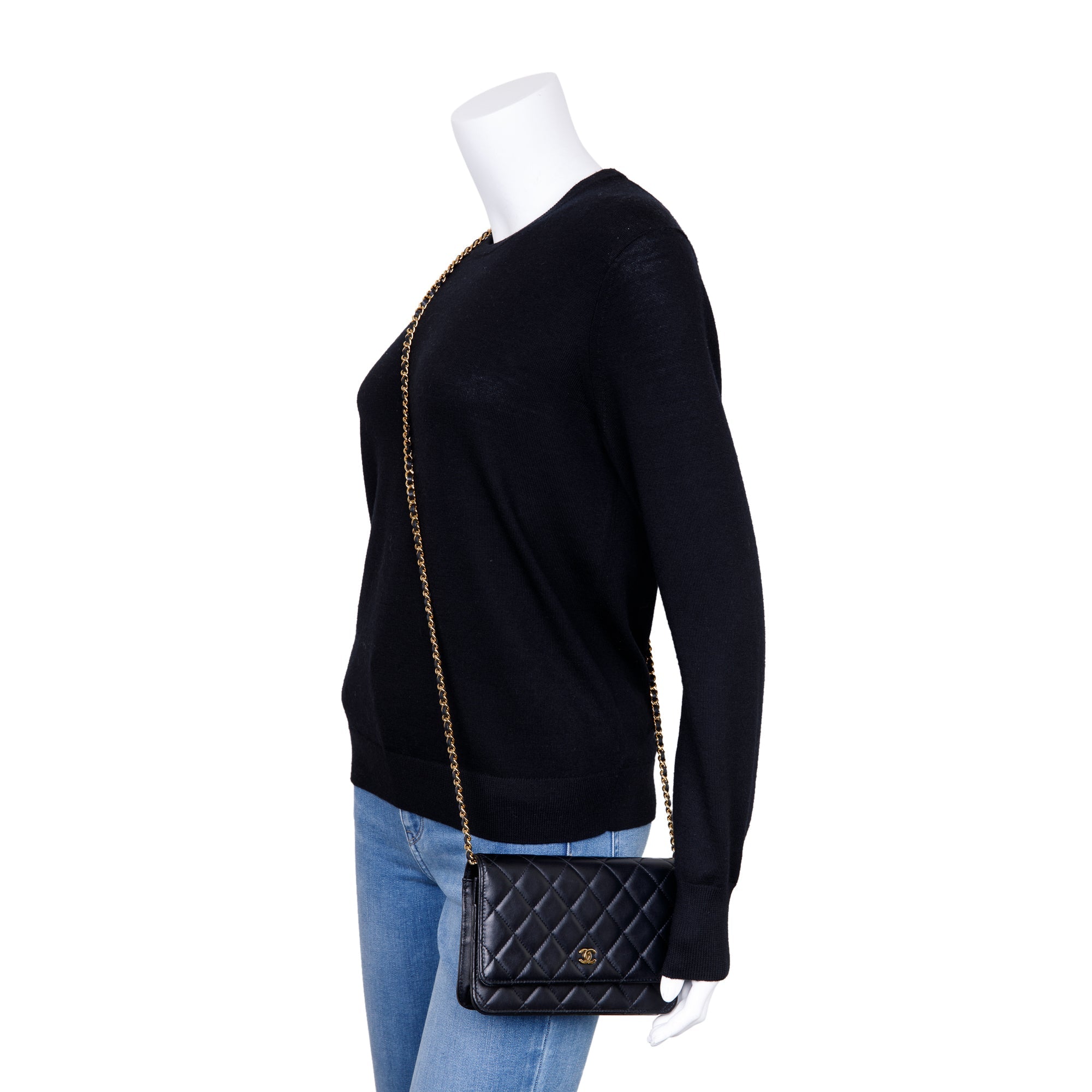 Black Lambskin Classic Wallet on Chain w/ Box & Authenticity Card