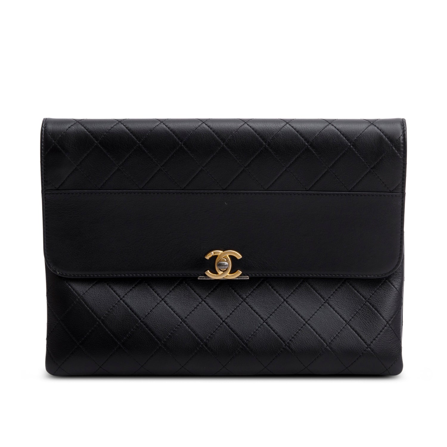 Black Lambskin Sleek and Chic Clutch w/ Box & Authenticity Card