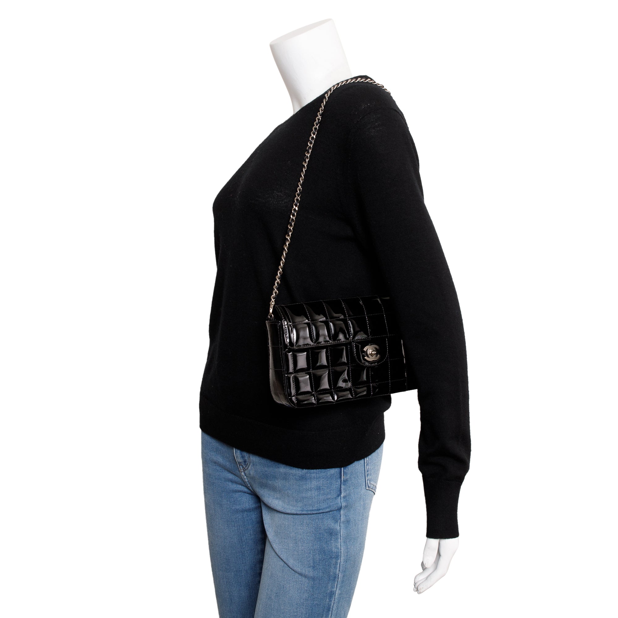 Black Patent Leather Chocolate Bar E/W Flap Bag w/ Authenticity Card