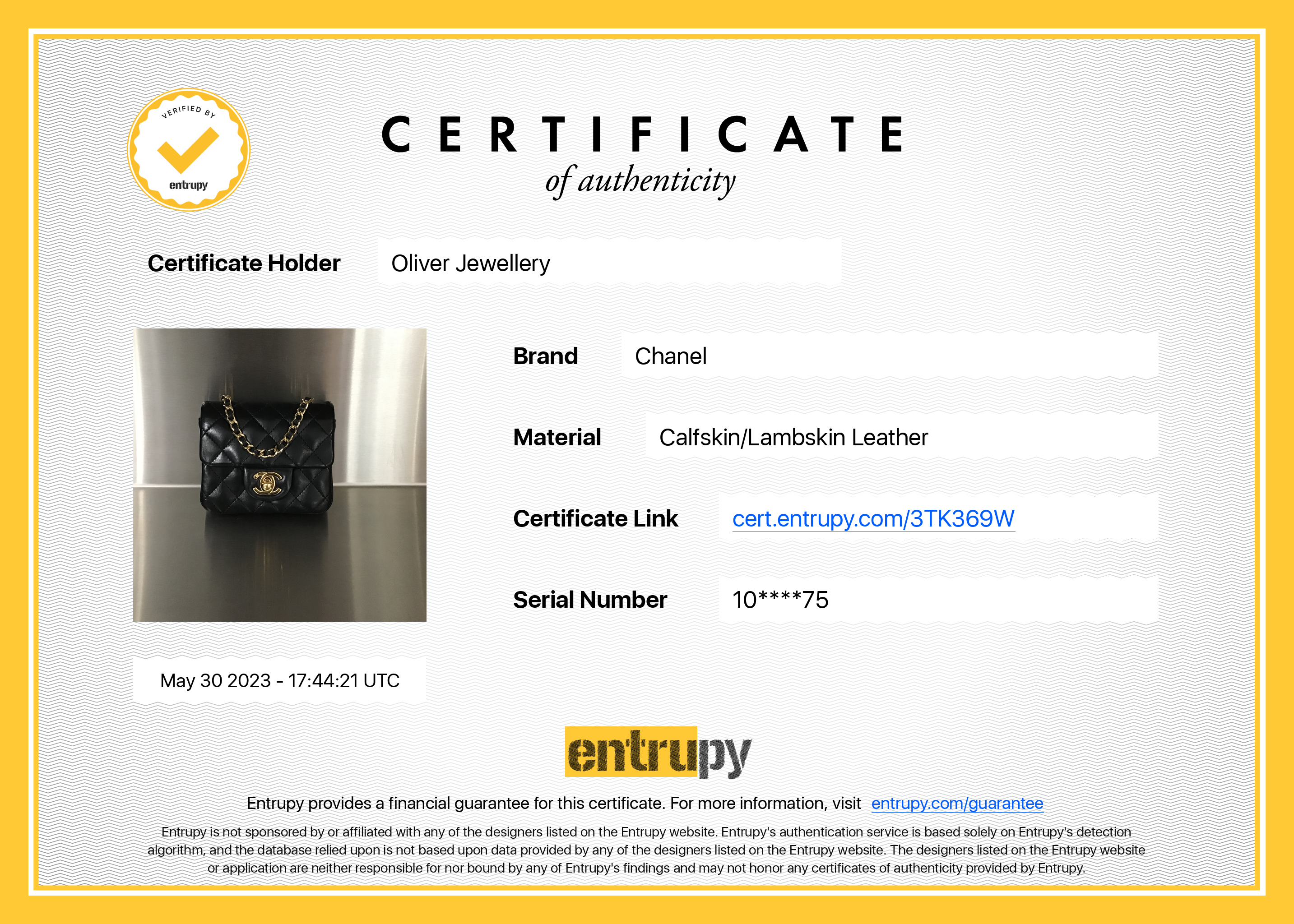 Included Items: Original Chanel Dust Bag and Entrupy Certificate of Authenticity #: 3Tk369W