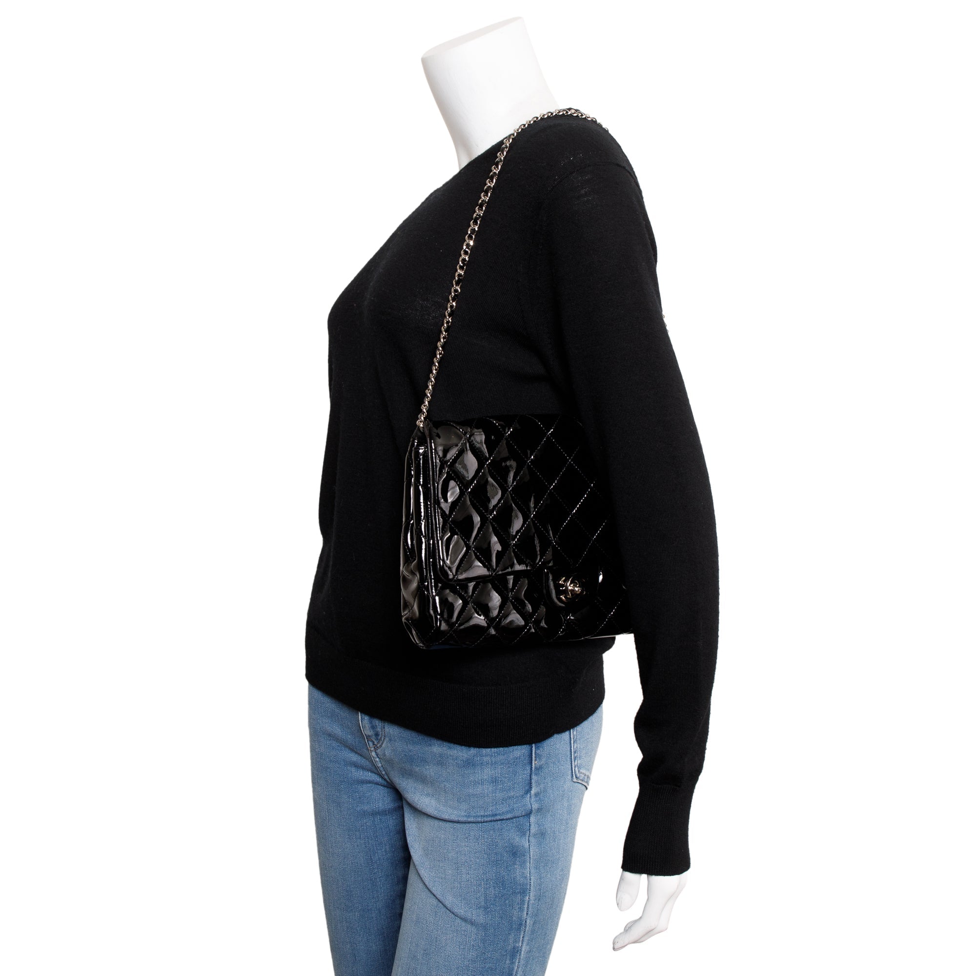 Black Quilted Patent Leather New Clutch