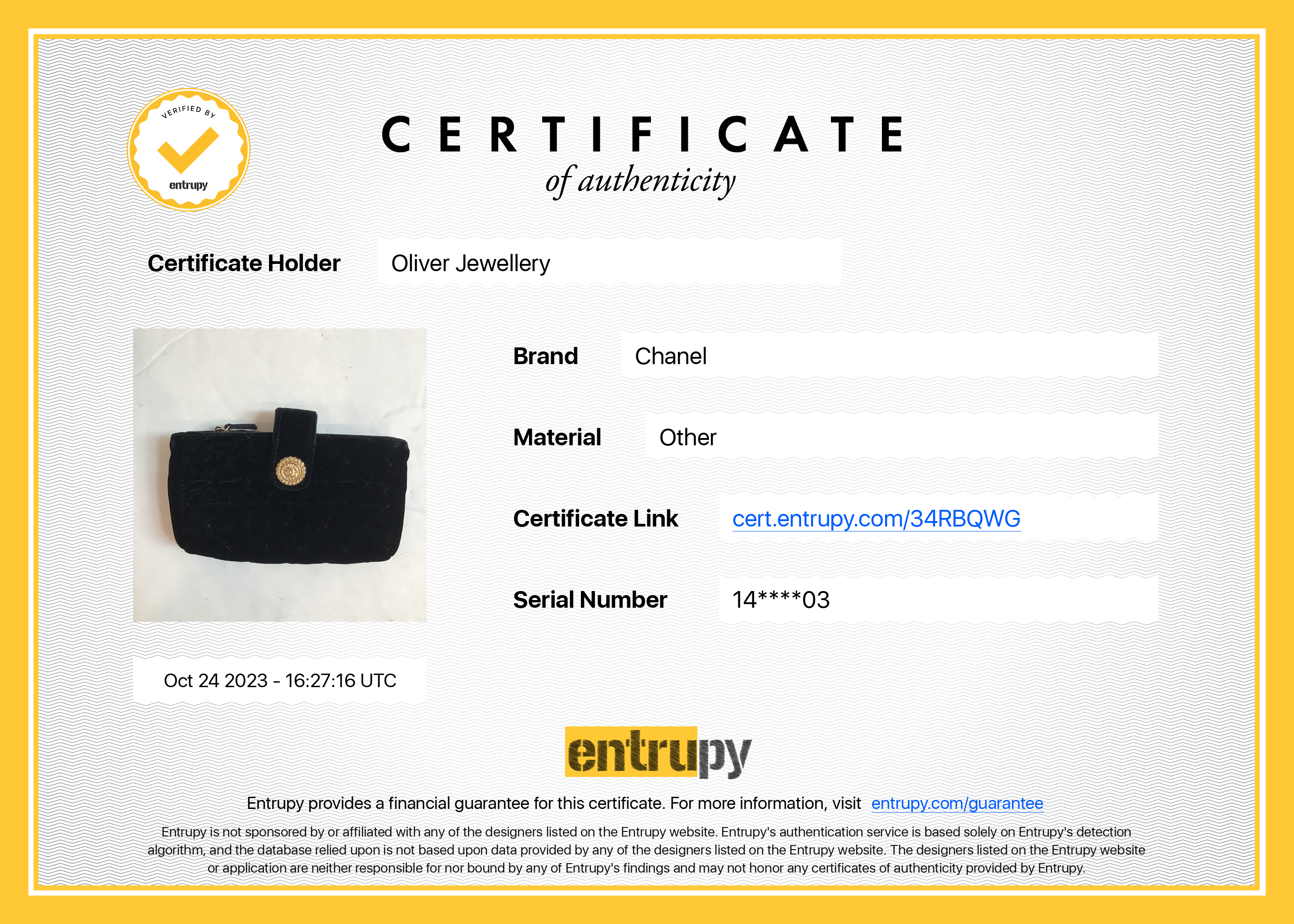 Box, Tags, Entrupy Certificate of Authenticity