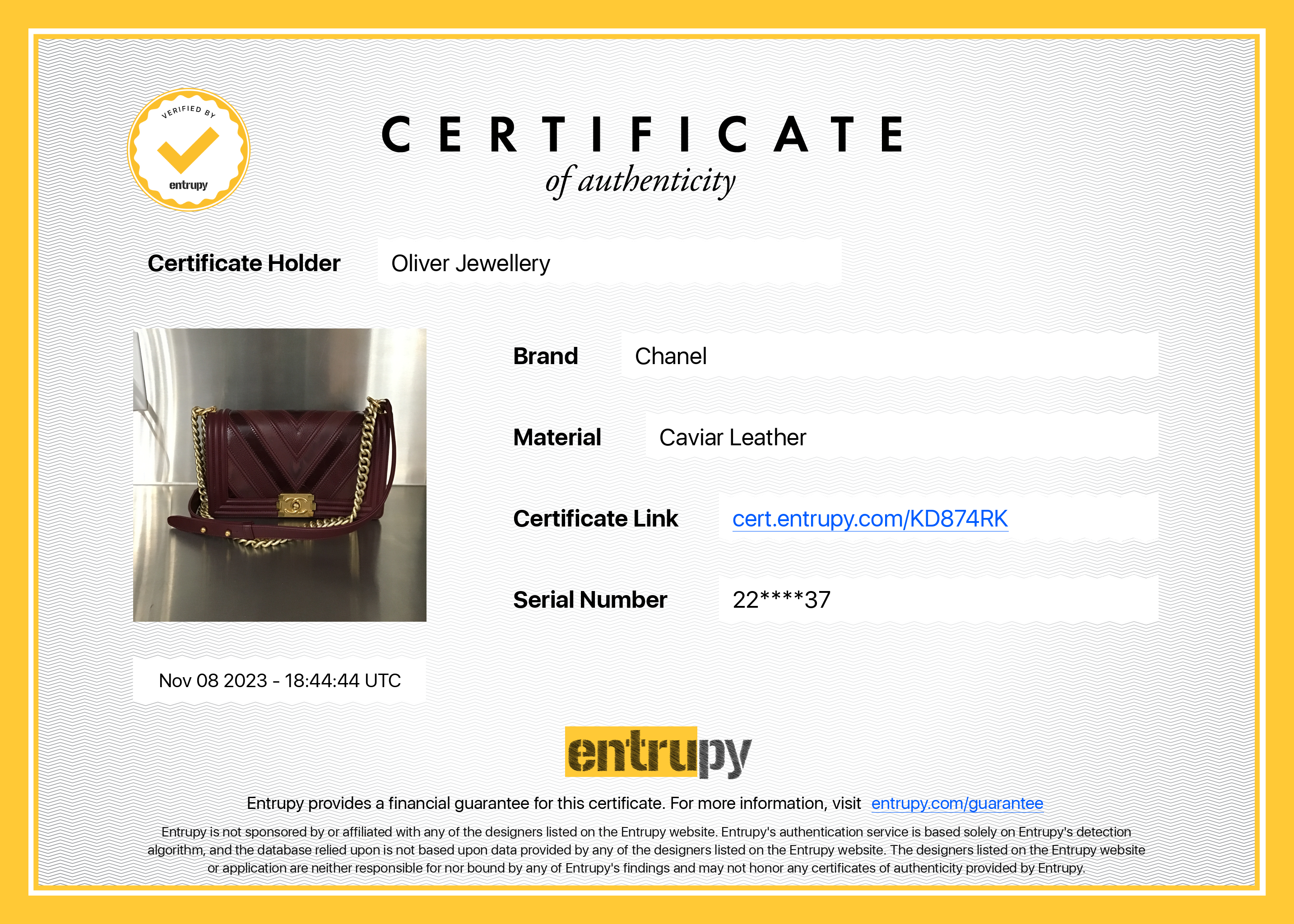 Box, Receipt, Authenticity Card, Entrupy Certificate of Authenticity