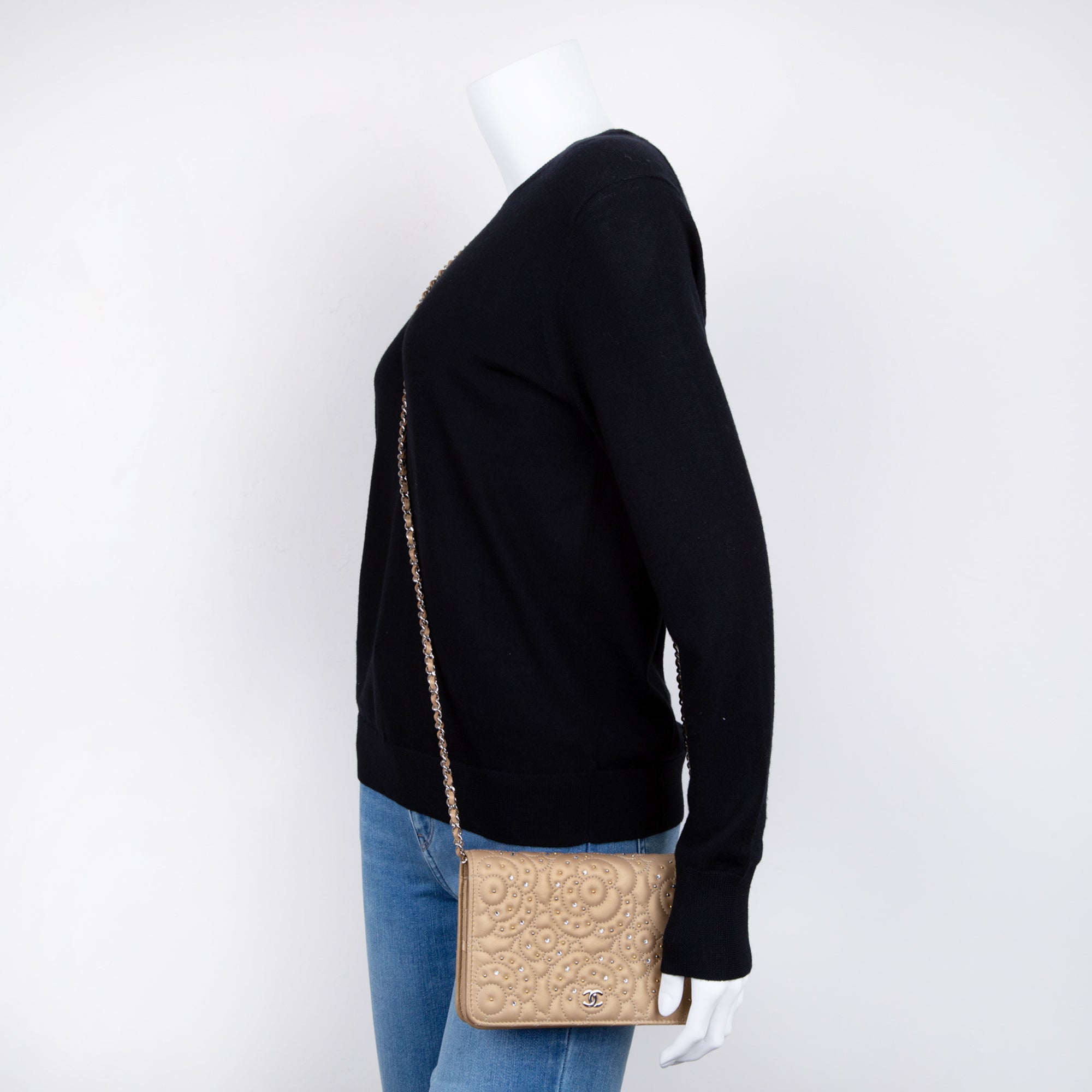 Camellia Studded Wallet on Chain w/ Authenticity Card