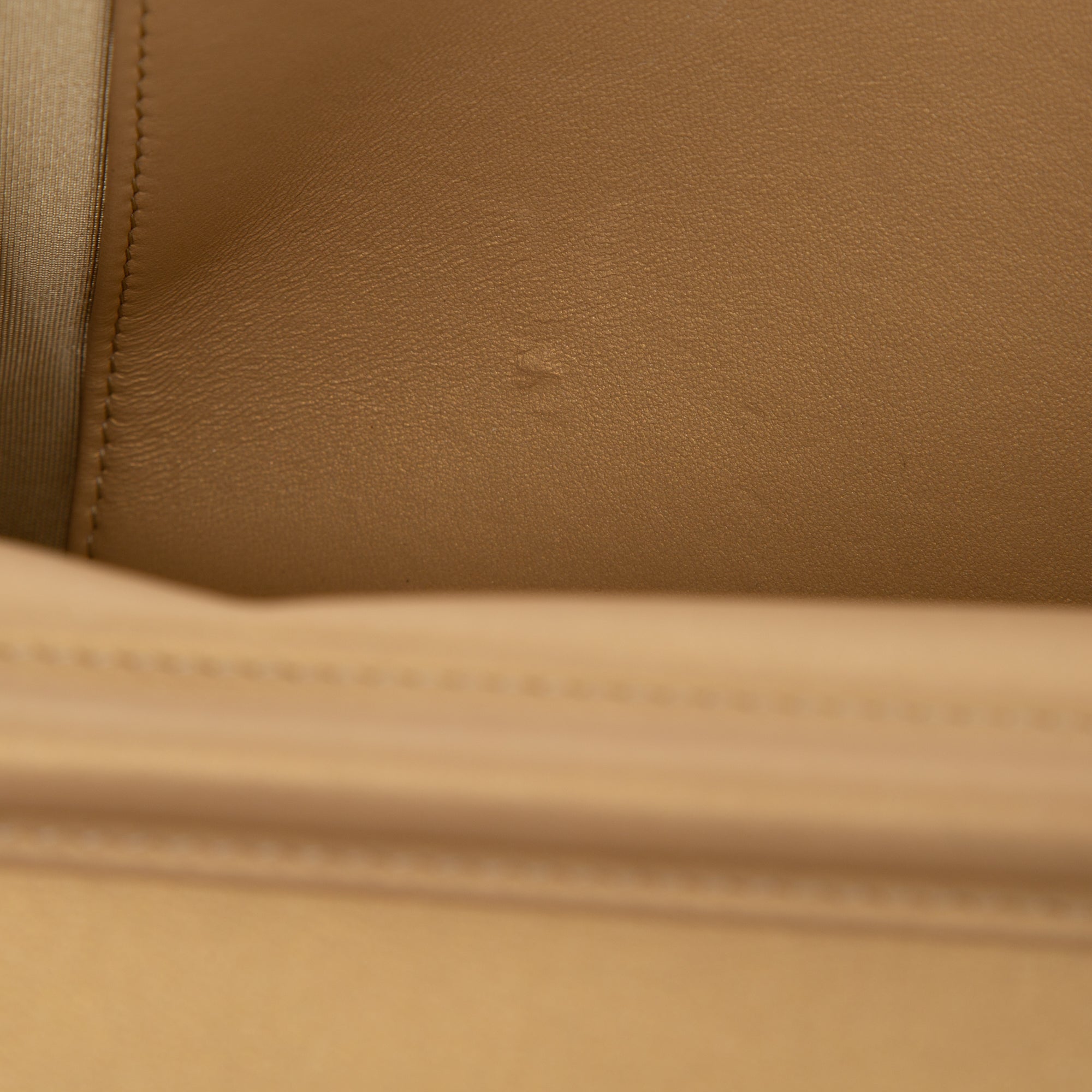 Condition: Very good; minor scratches at hardware; minor scuffs at exterior bottom corner; slight marks and indentation at leather under flap; clean interior