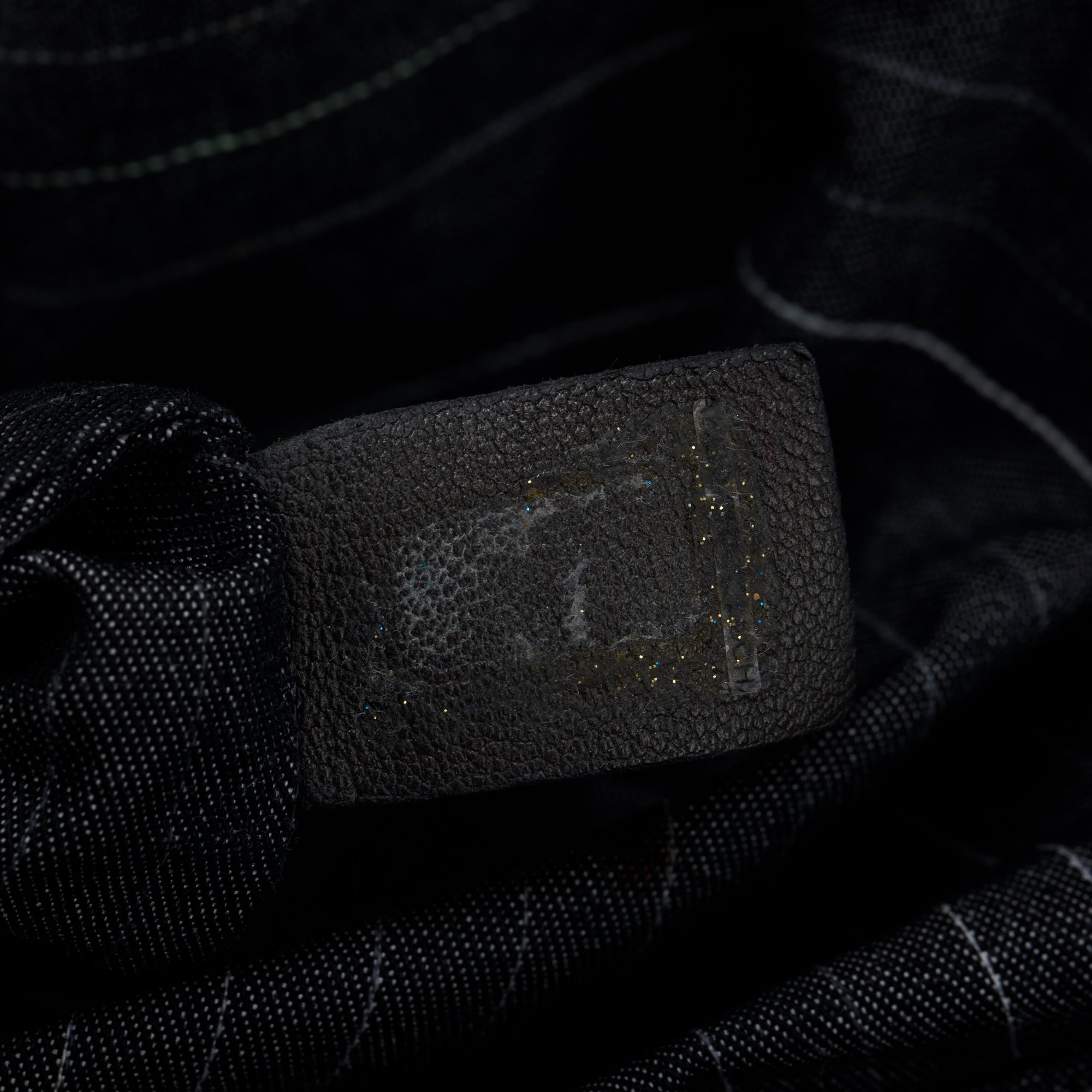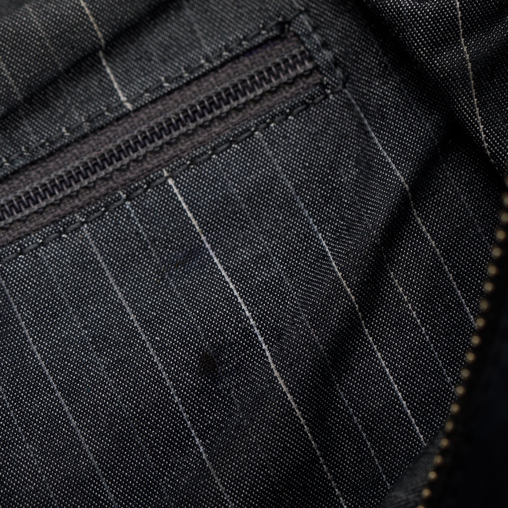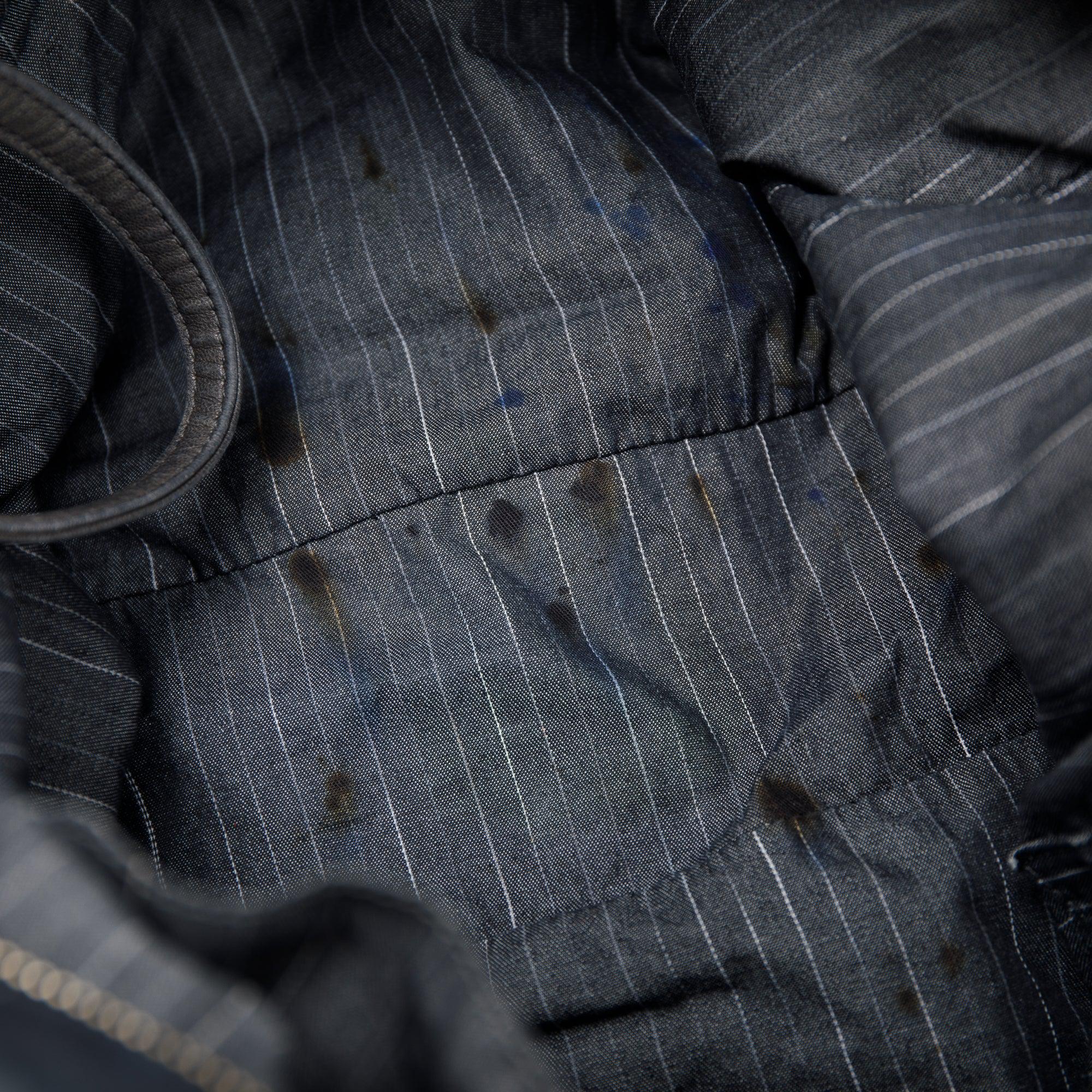 Condition: Good; slight scratches and tarnishing at hardware; slight scuffing and wear at exterior handles and straps; some ink staining and wear at interior