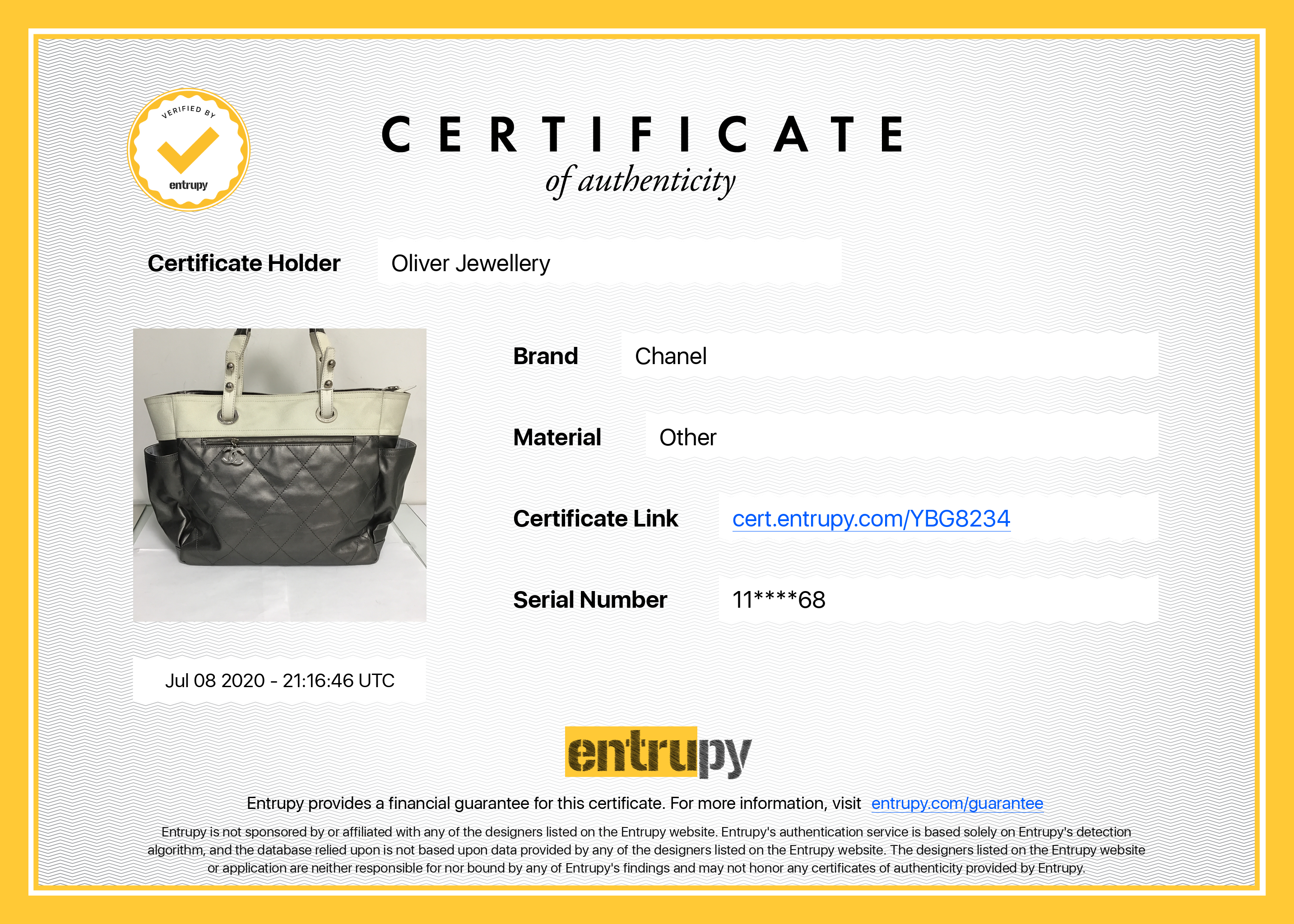 Included Item: Entrupy Certificate of Authenticity #YBG8234