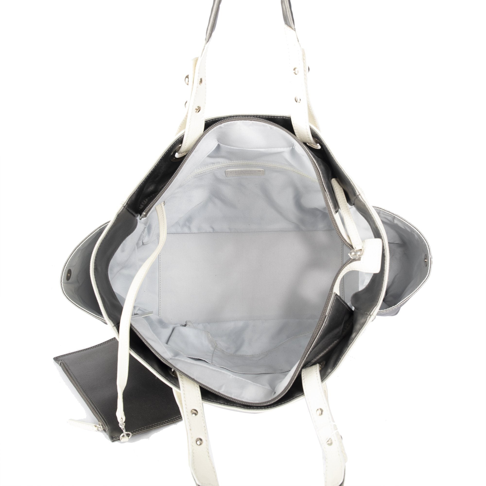 - Three Pockets at Interior Walls; One with Zip Closure