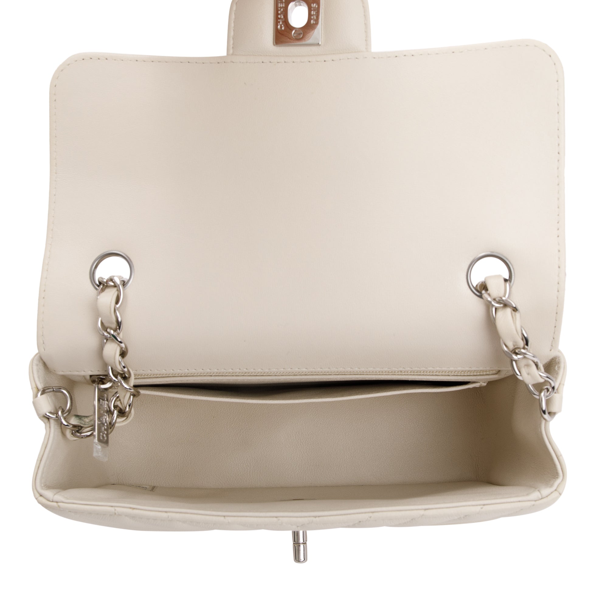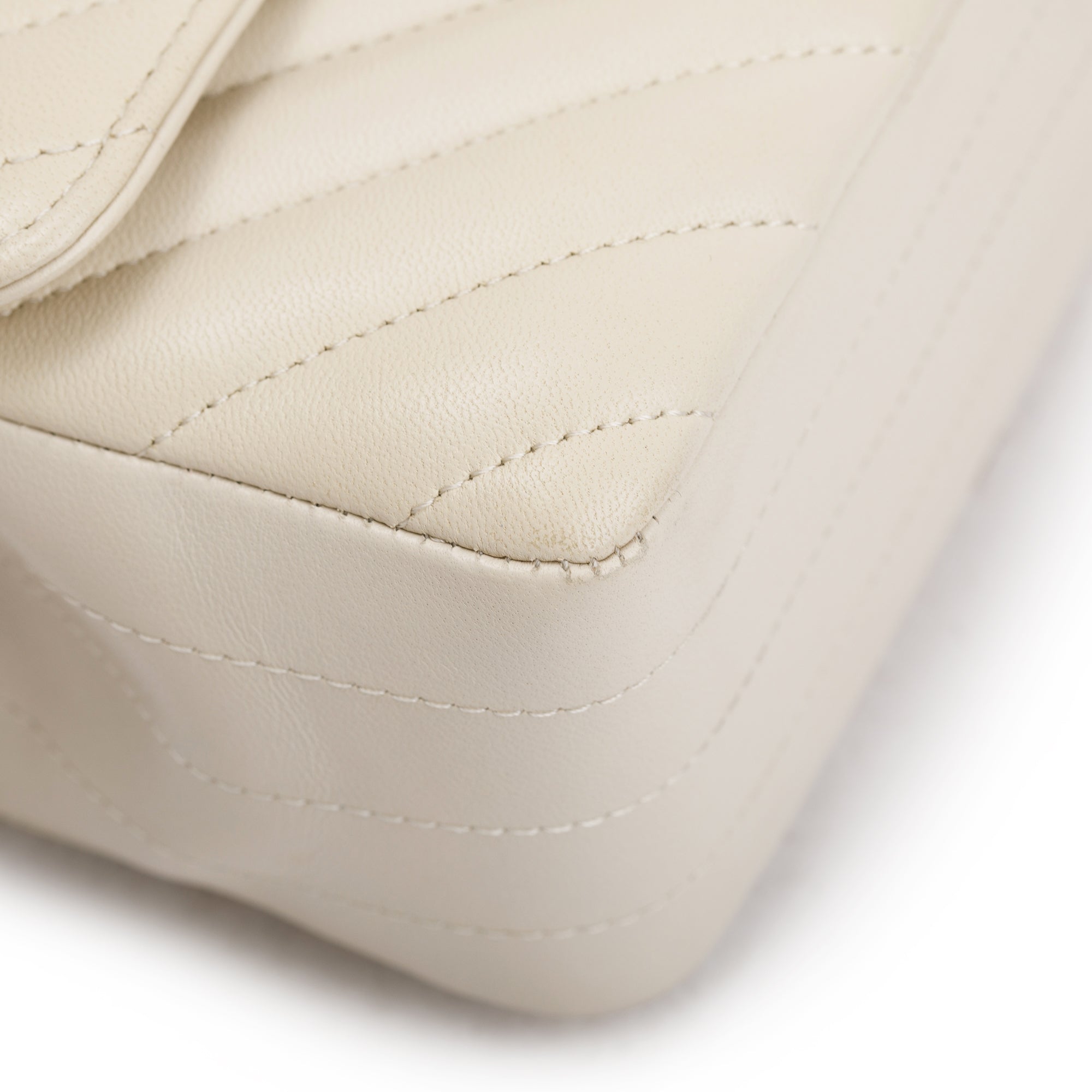 Neutral Chevron Quilted Lambskin Classic Mini Rectangular Flap Bag w/ Box & Authenticity Card