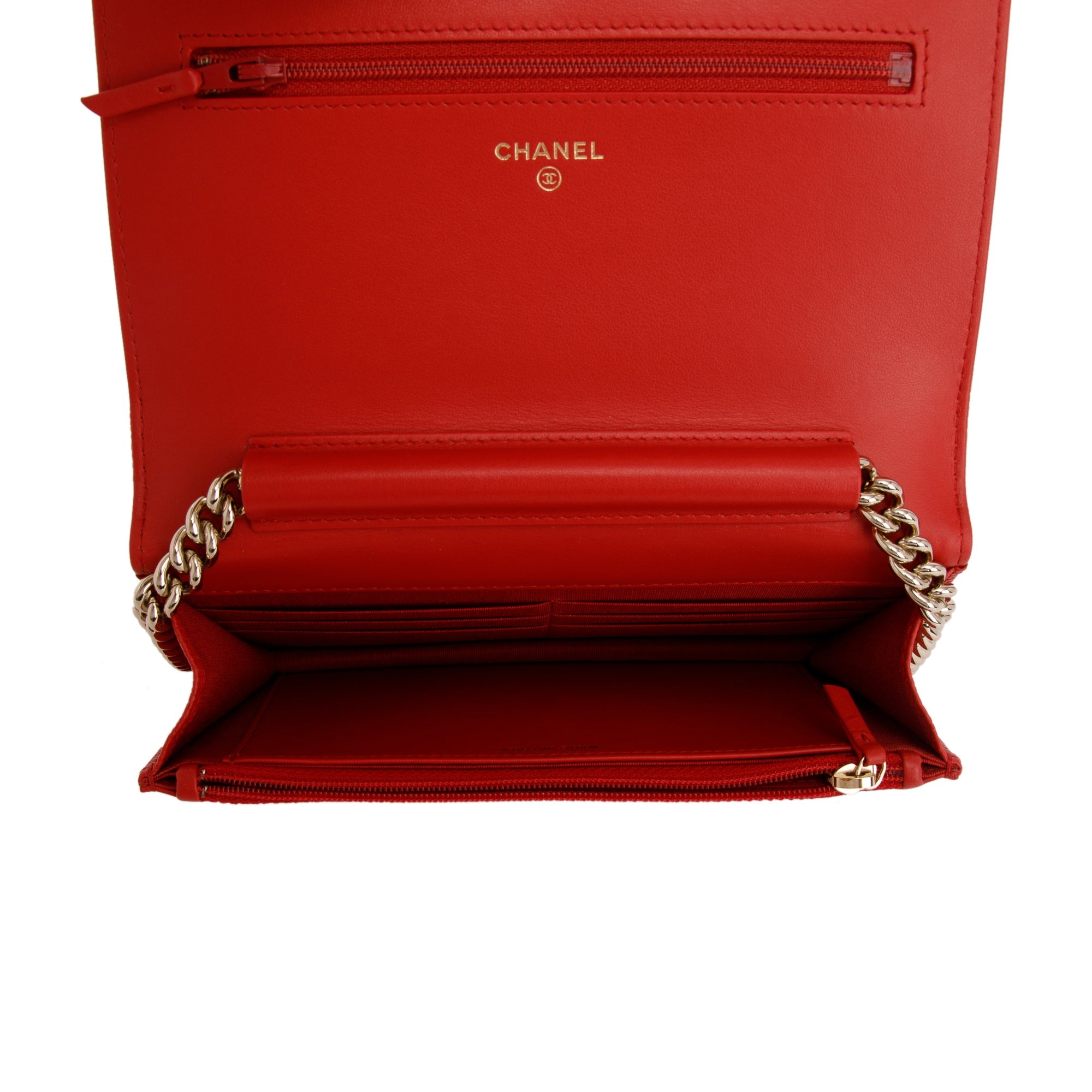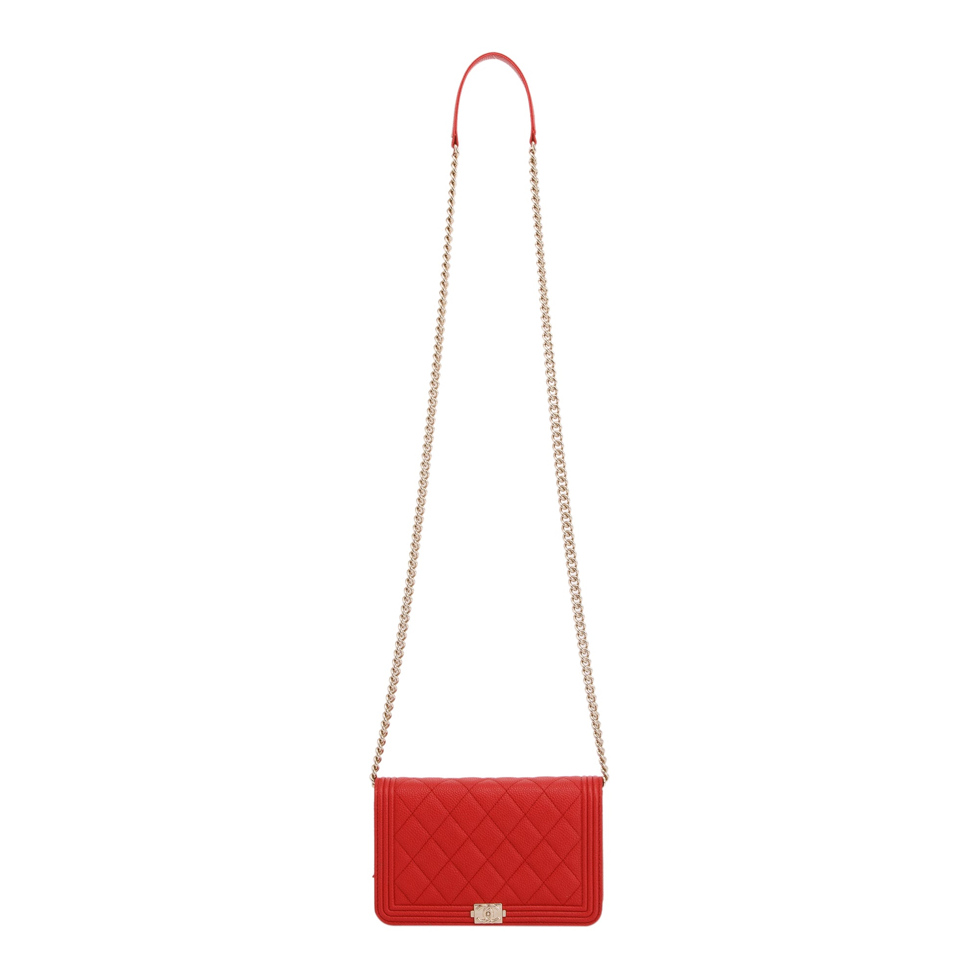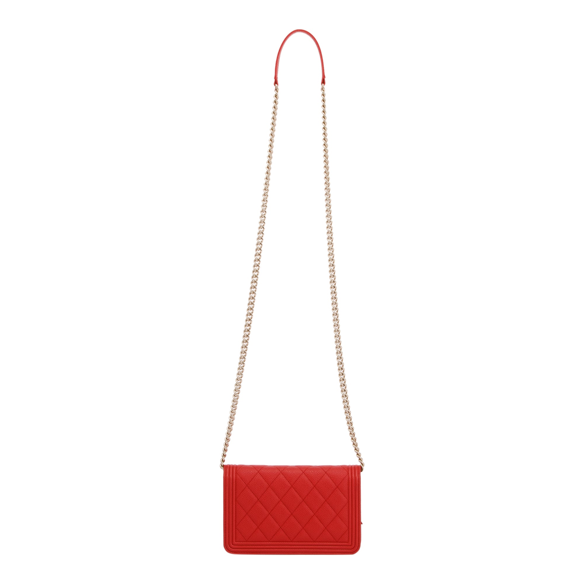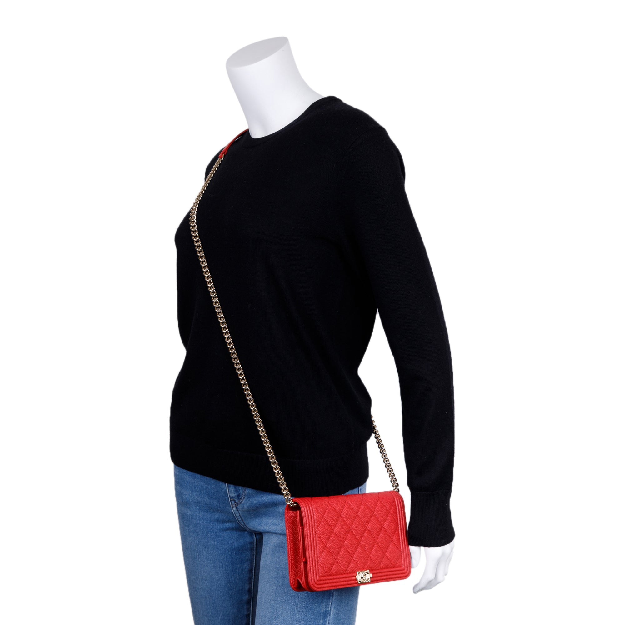 Chanel Red Caviar Leather Boy Wallet on Chain
