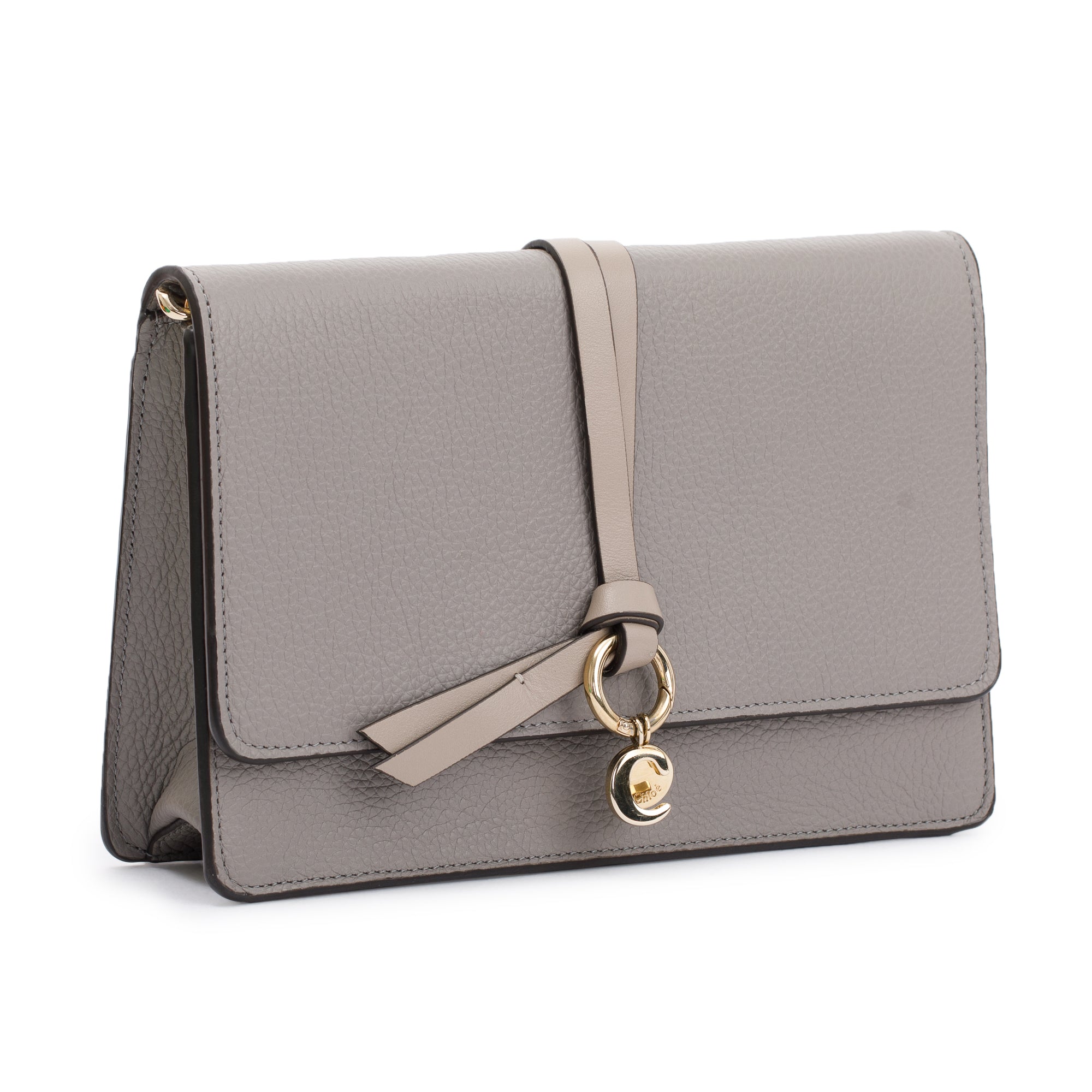 Grey Calfskin Leather Alphabet Clutch Crossbody Bag