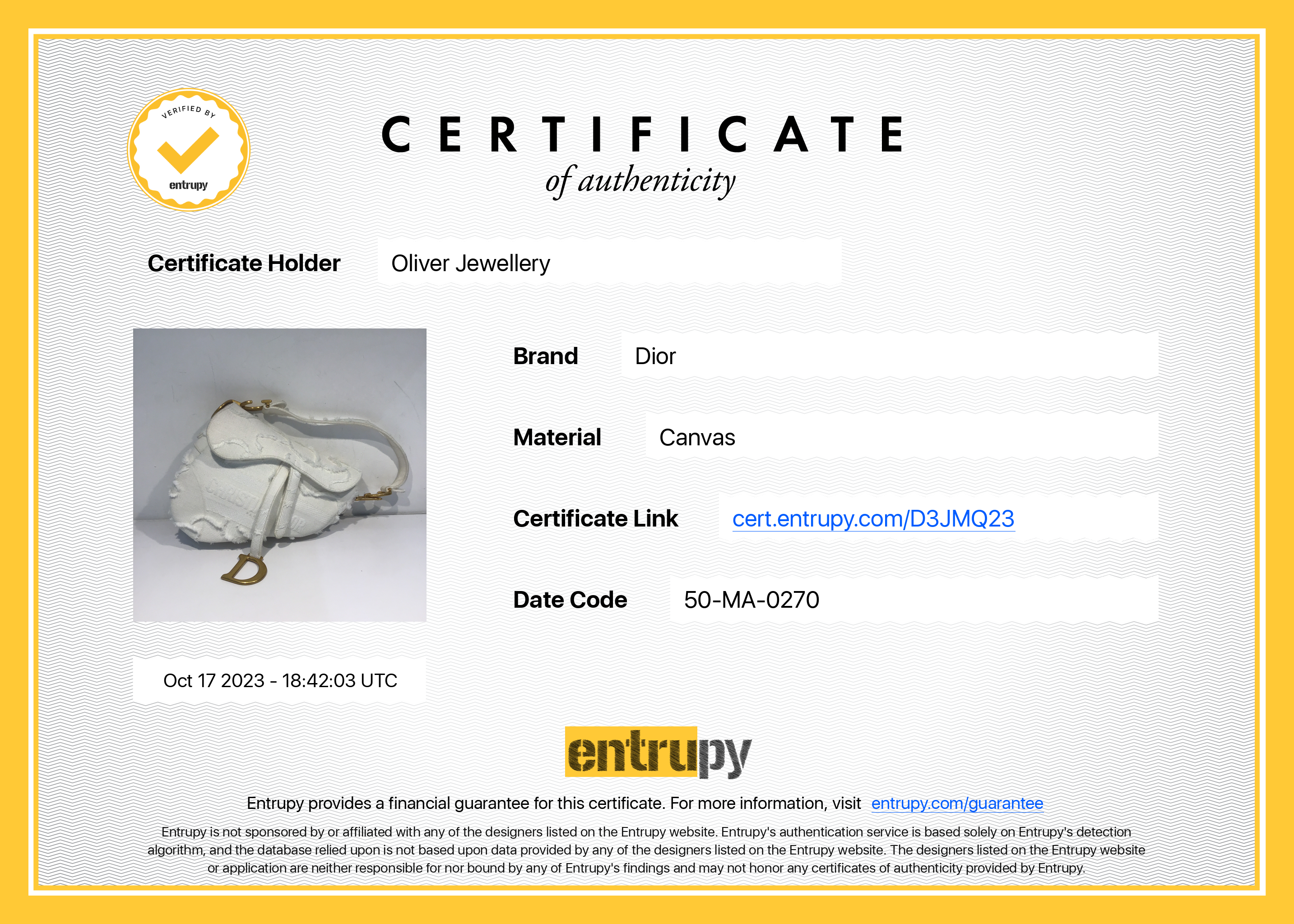 Box, Authenticity Card, Booklet, Dust Bag, Entrupy Certificate of Authenticity