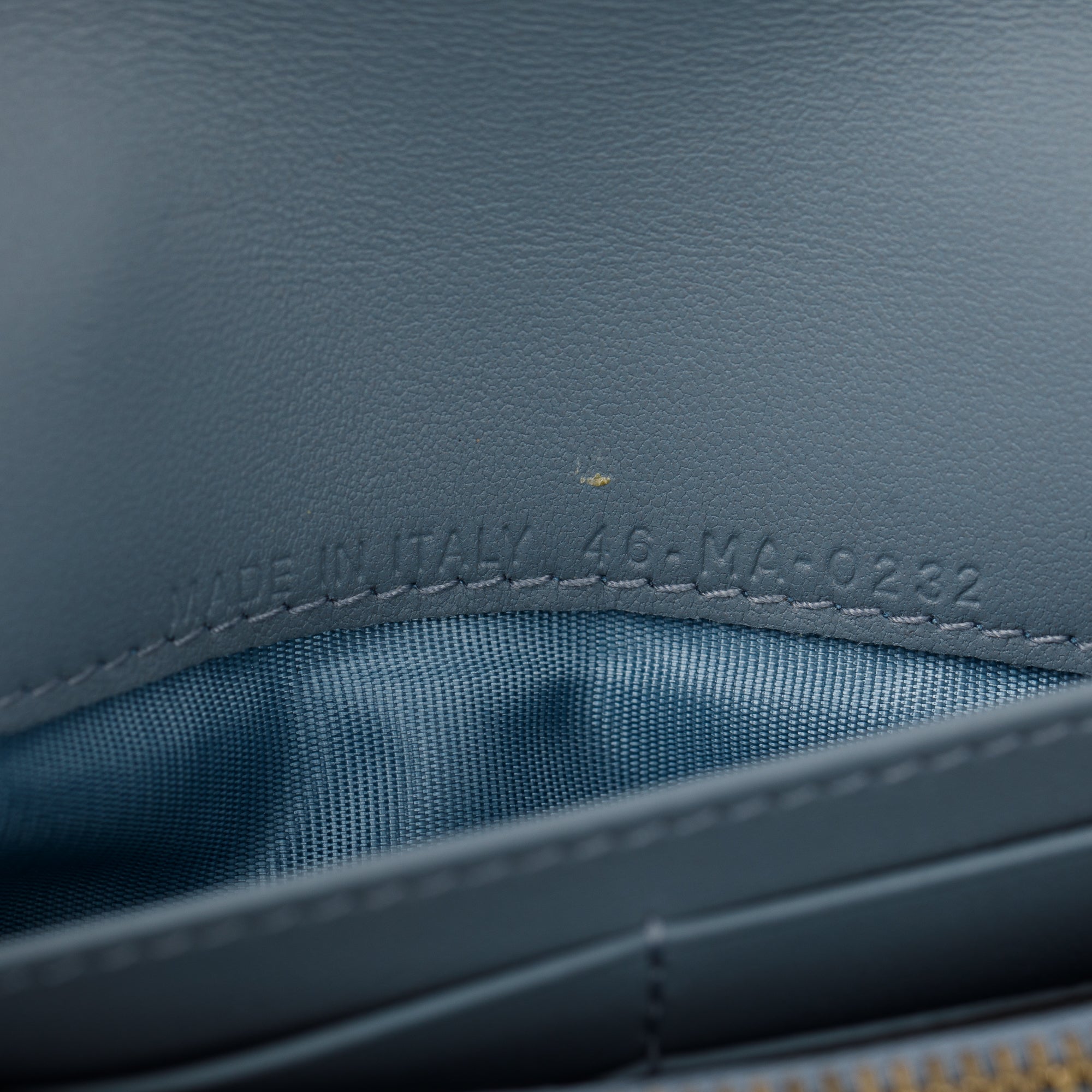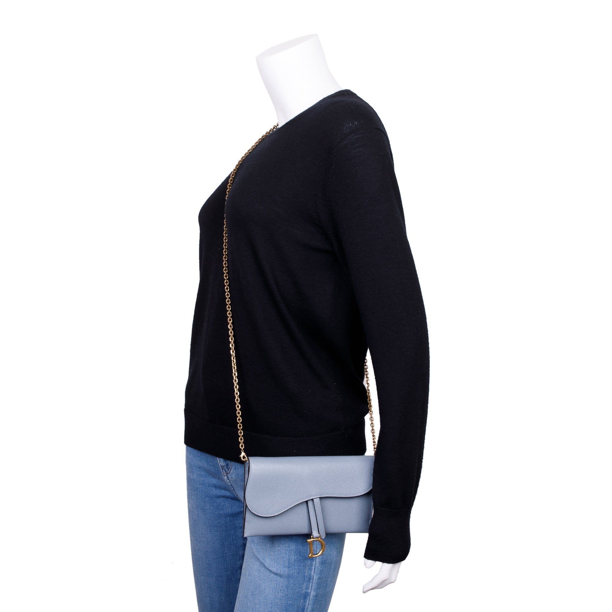 2022 Blue Grained Calfskin Leather Saddle Chain Pouch w/ Box, Strap & Pouch