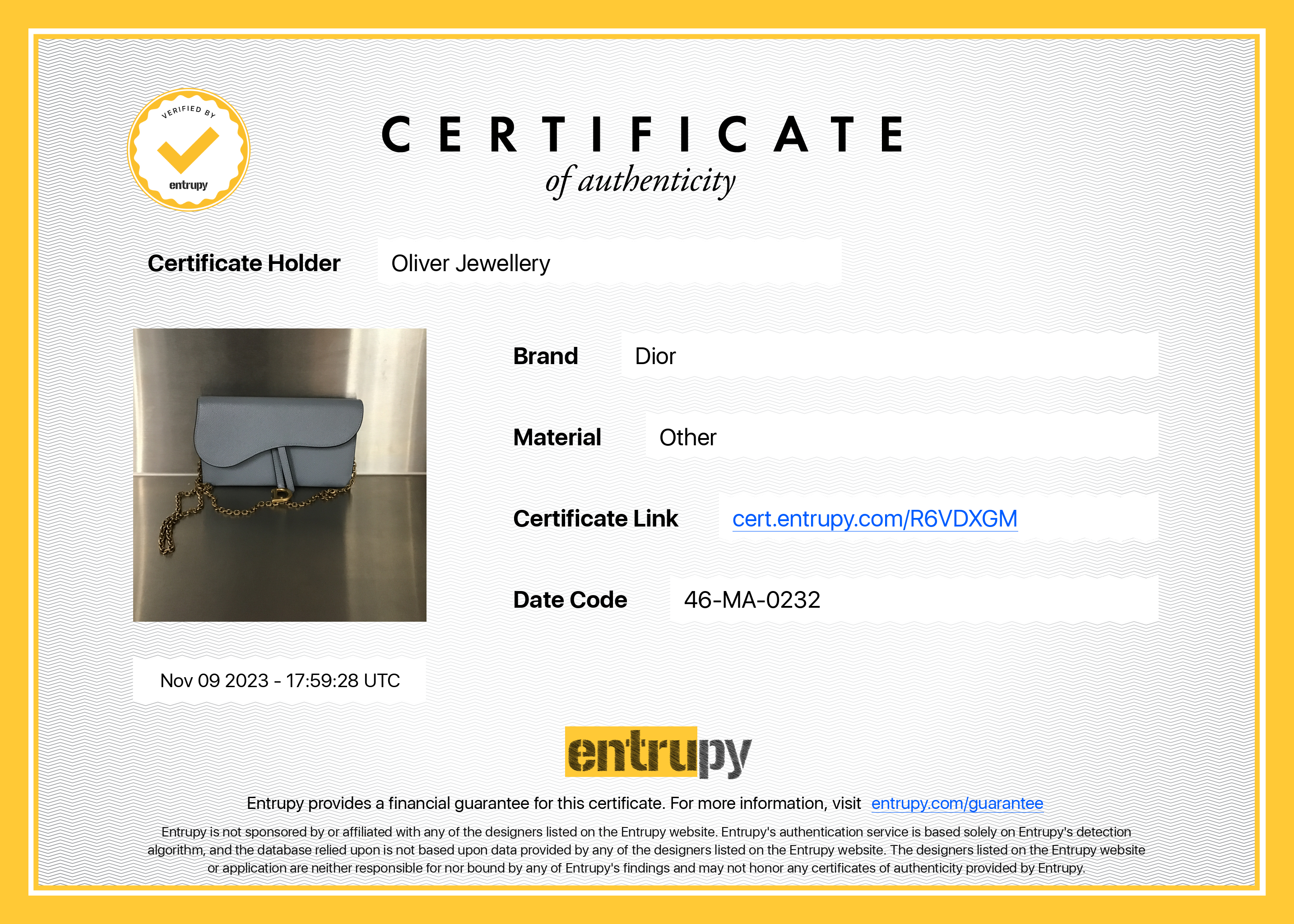 Box, Dust Bag, Detachable Chain, Zip Pouch, Entrupy Certificate of Authenticity