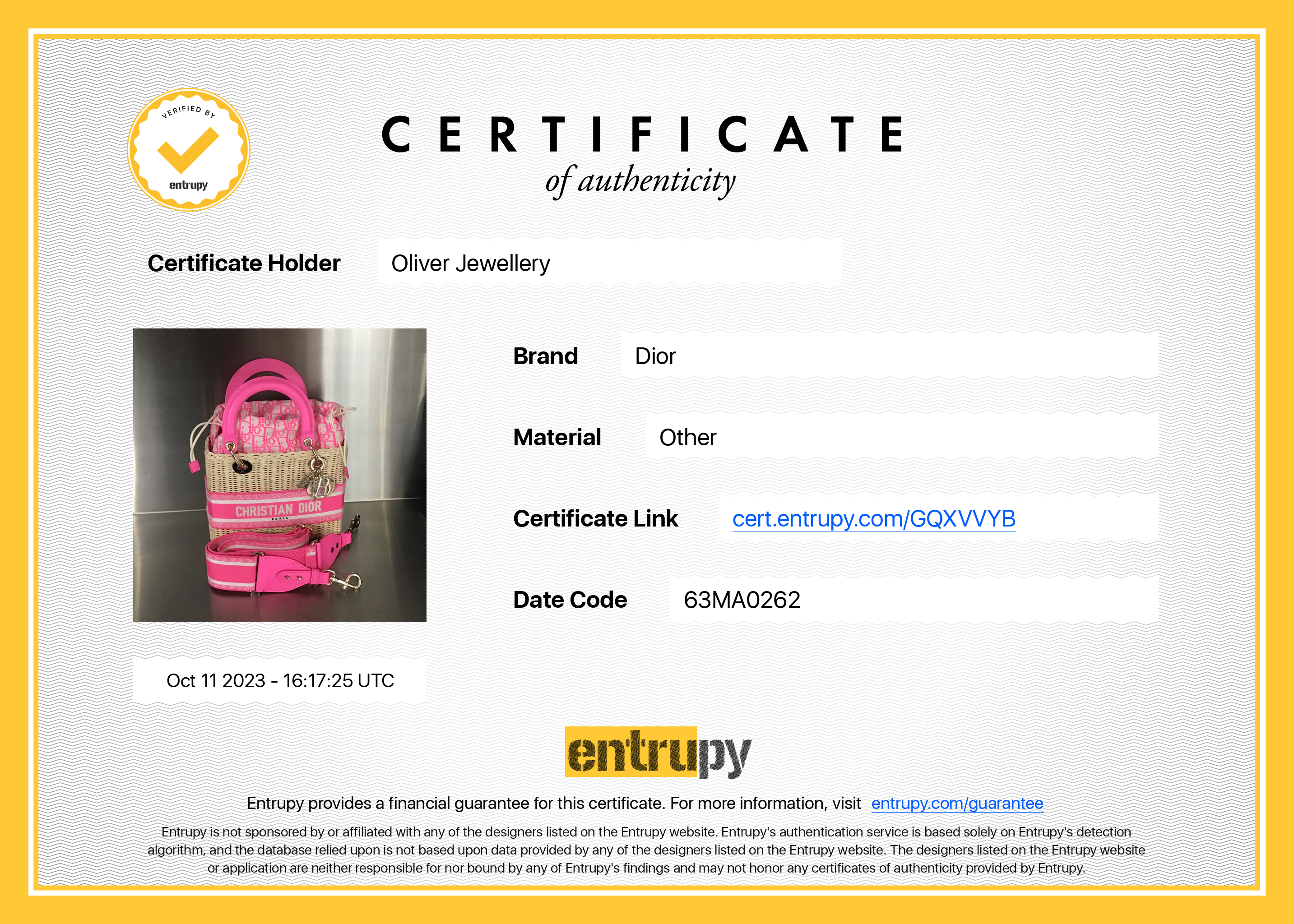 Box, Dust Bag, Authenticity Card, Booklet, Detachable DIOR Charms, Detachable Strap, Entrupy Certificate of Authenticity