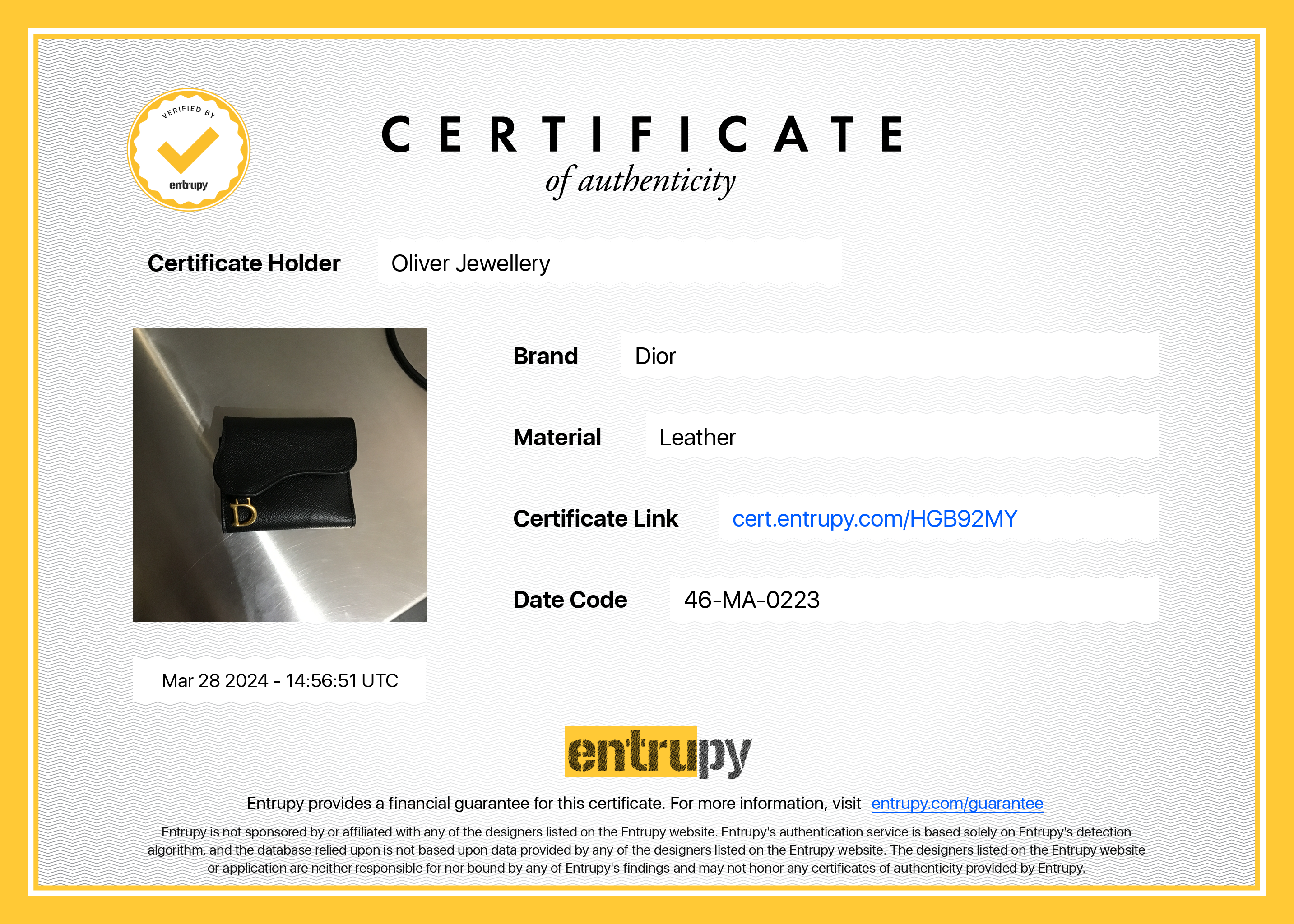 Box, Dust Bag, Entrupy Certificate of Authenticity