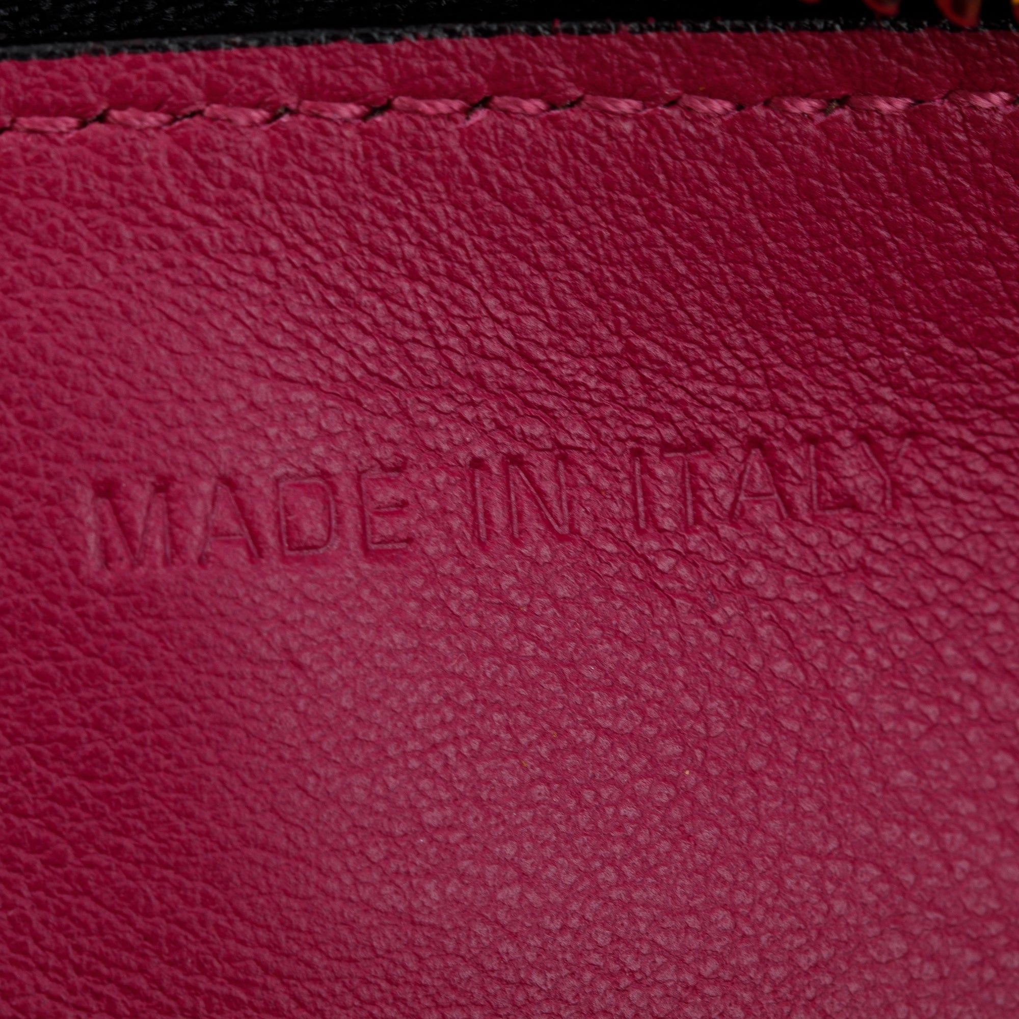 Condition: Very Good; light scratches at hardware; light creasing and scratches at exterior leather; light scuffing at exterior bottom corners; slight scratches at interior lining