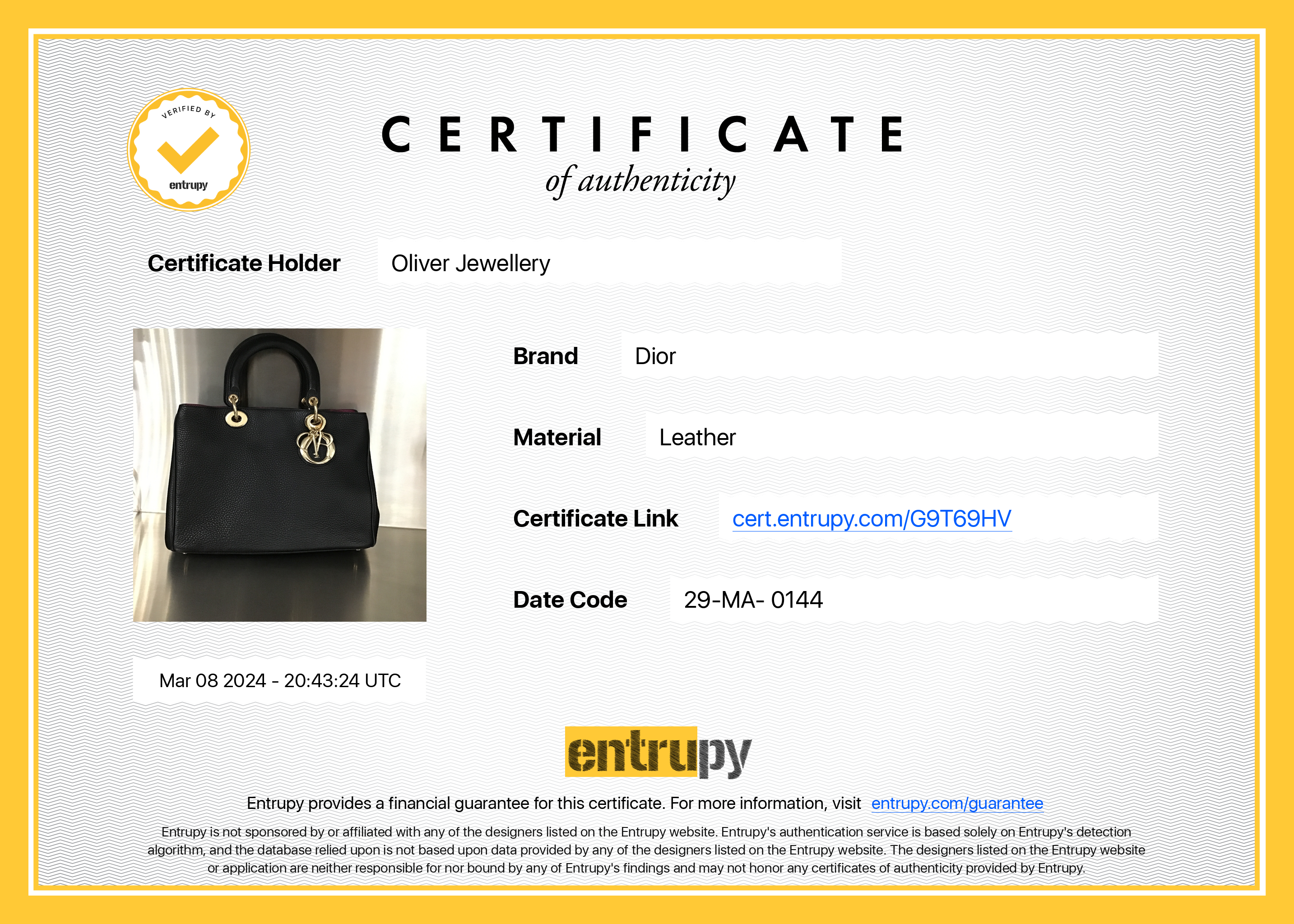 Dust Bag, Detachable Strap, Detachable Pouch, Booklets, Entrupy Certificate of Authenticity