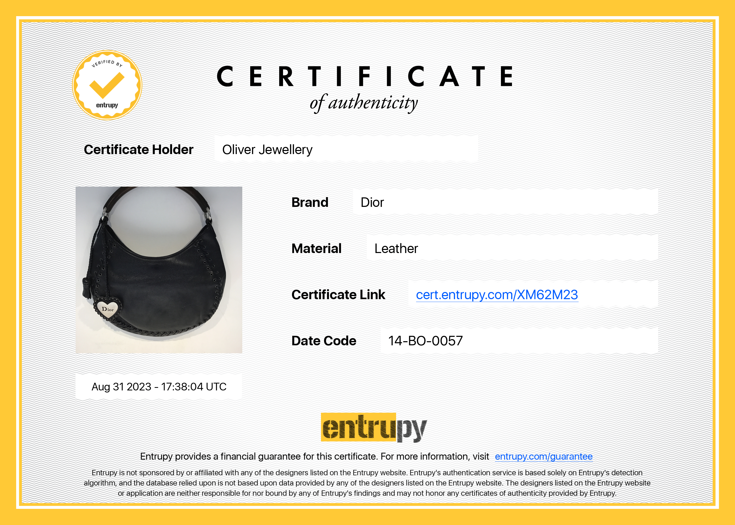 Braided Heart Charm, Tassel, Entrupy Certificate of Authenticity