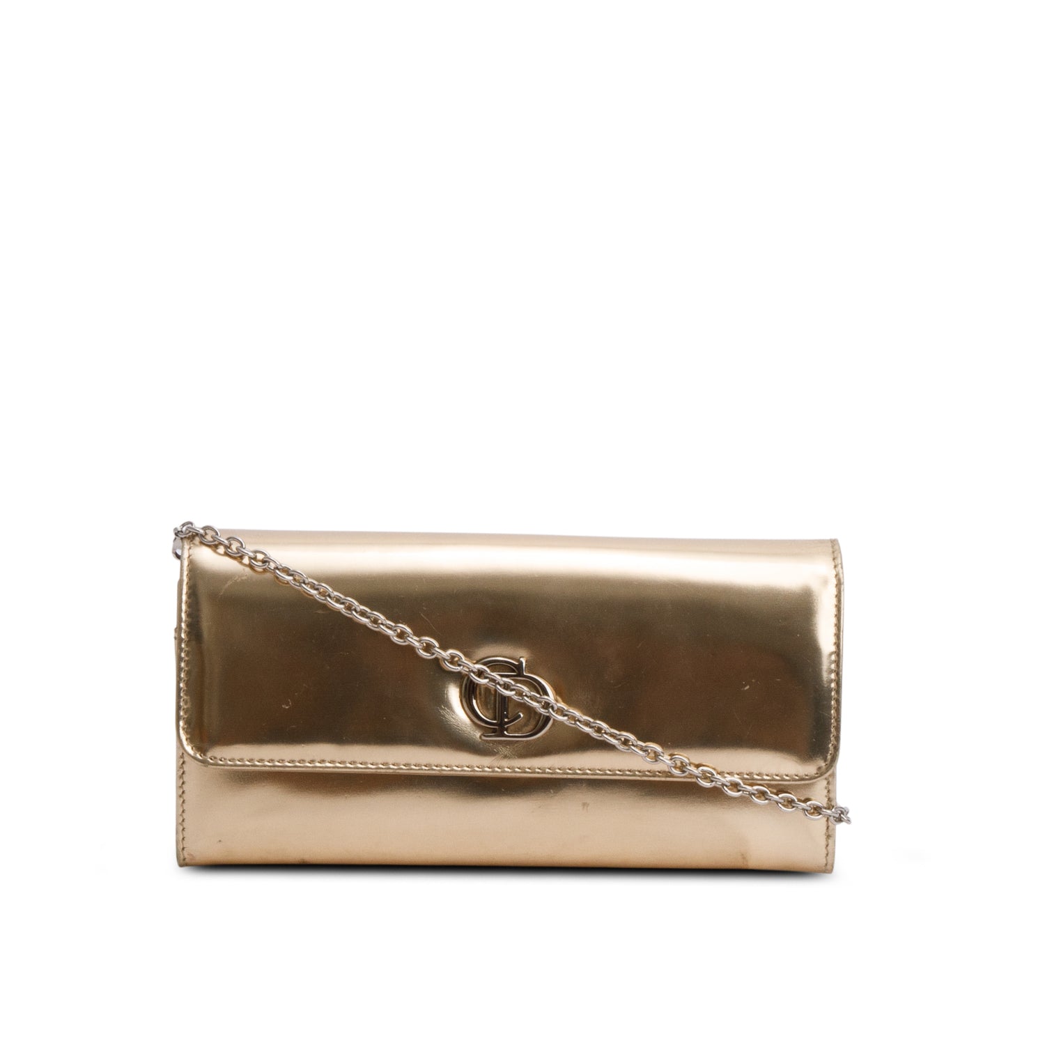 Gold Patent Leather Timeless Rendezvous Wallet on Chain w/ Box & Receipt