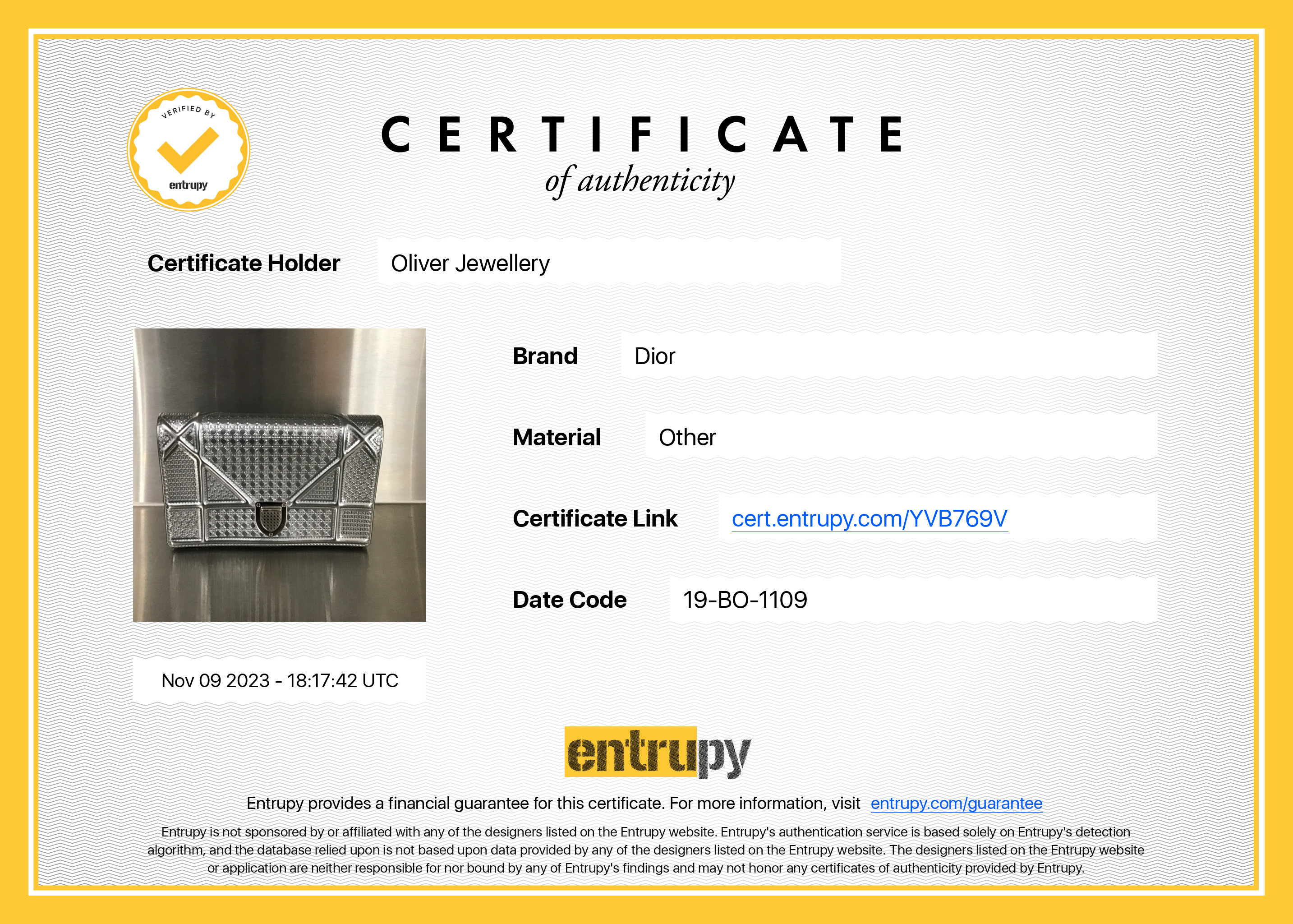 Metallic Silver Cannage Patent Leather Diorama Wallet on Chain