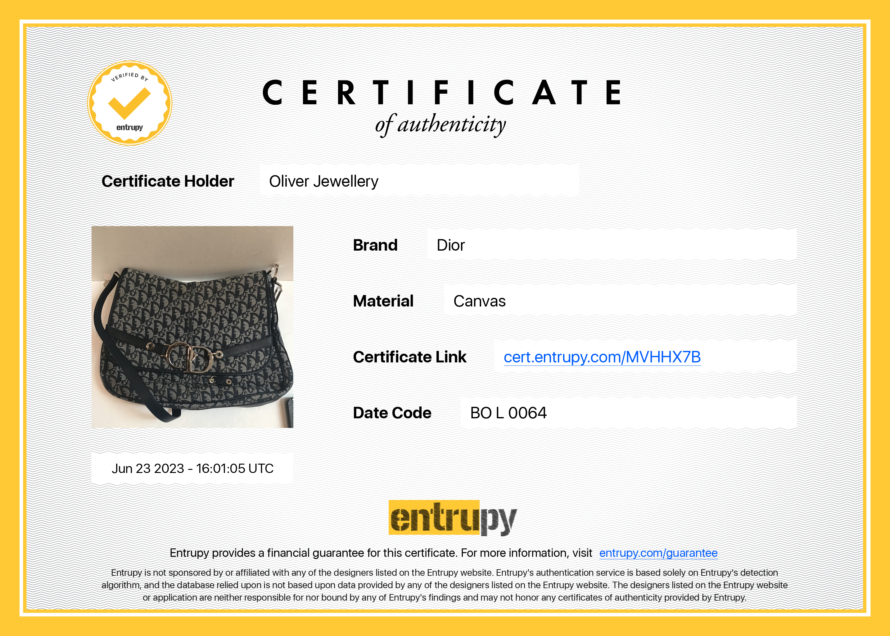 Included Items: Original Dior Dust Bag and Entrupy Certificate of Authenticity #: MVHHX7B