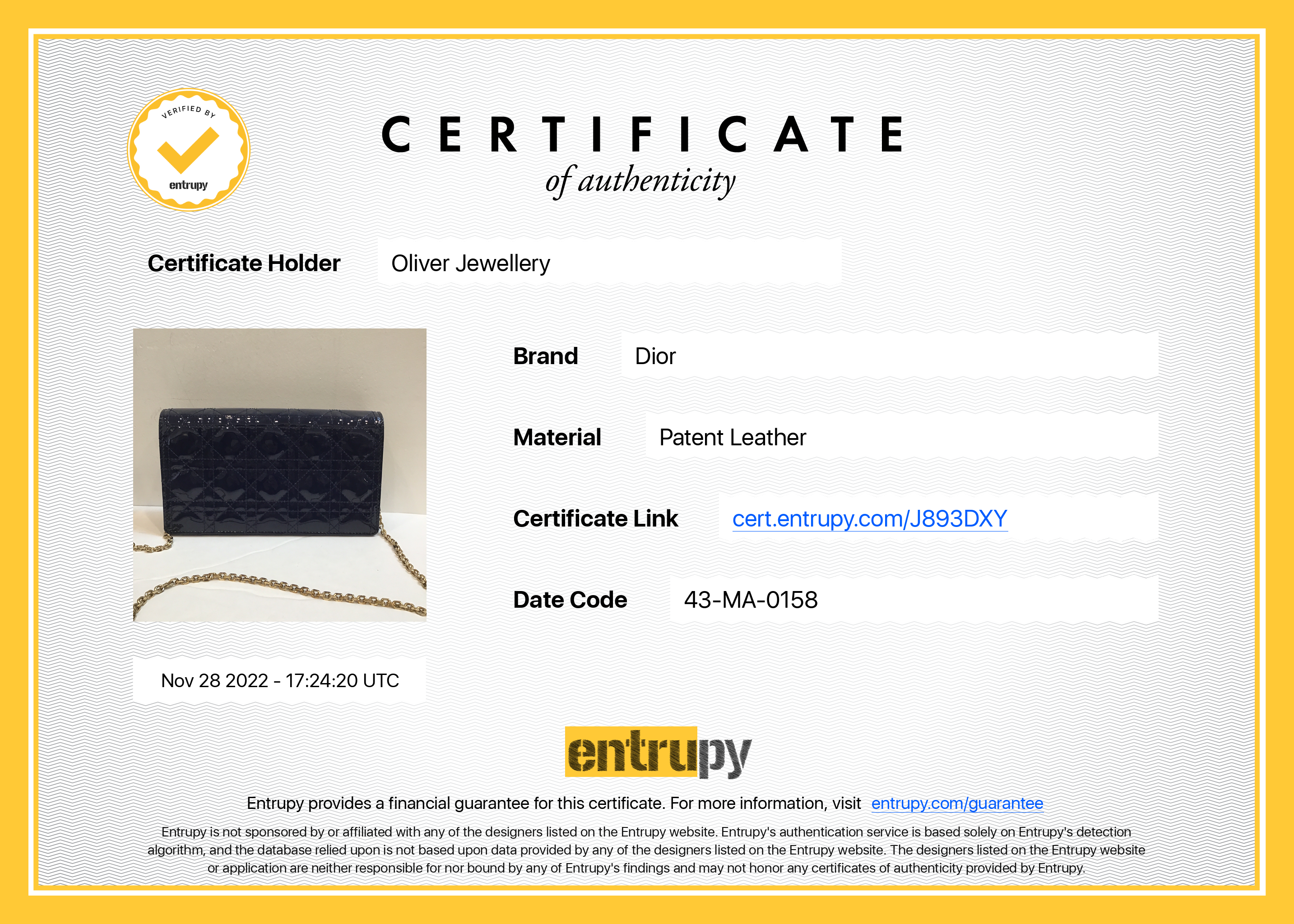 Included Items: Original Dior Box, Dust Bag, 2 Removable Inserts & Entrupy Certificate of Authenticity #: J893DXY
