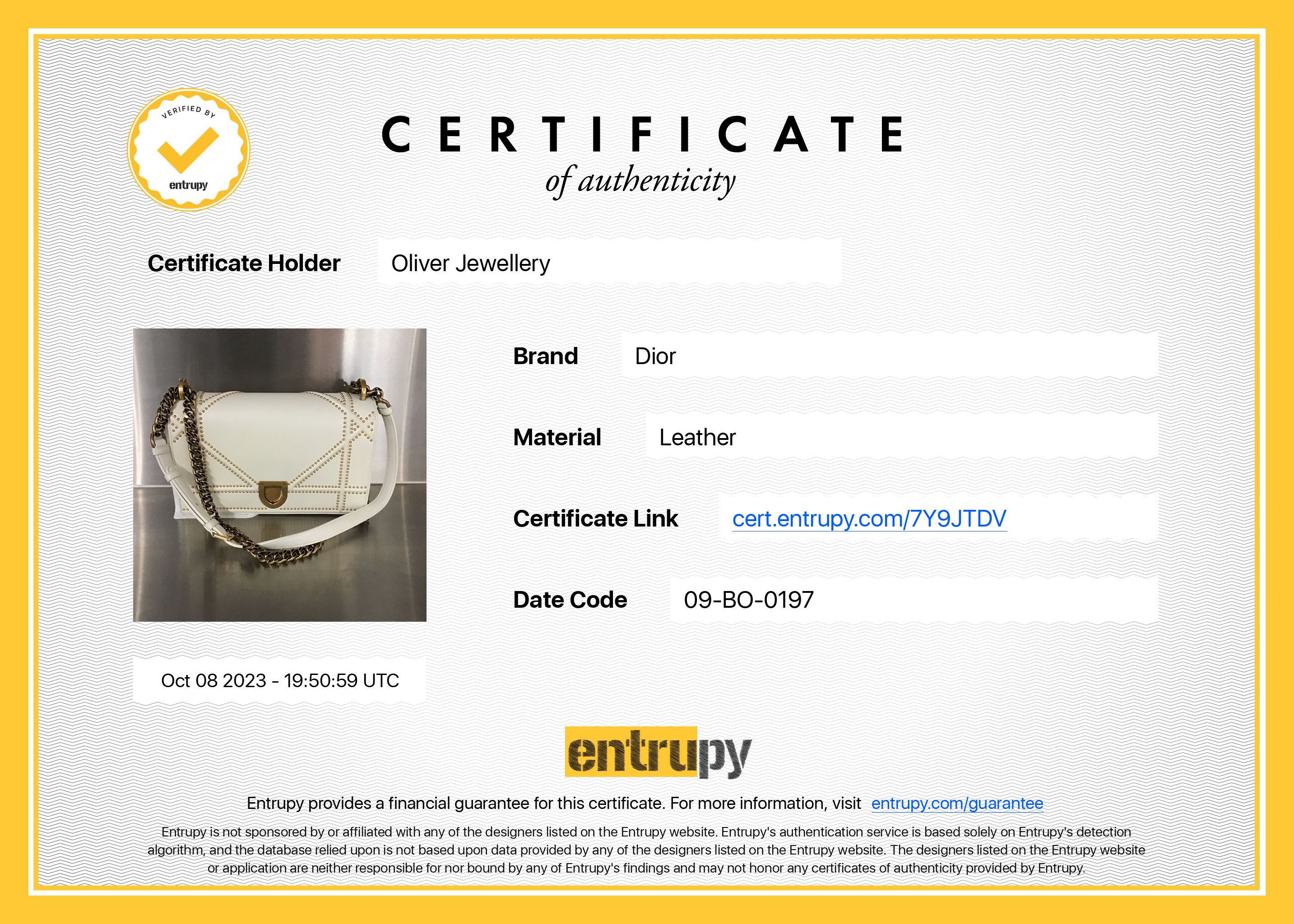 Dust Bag, Authenticity Card, Booklet, Entrupy Certificate of Authenticity