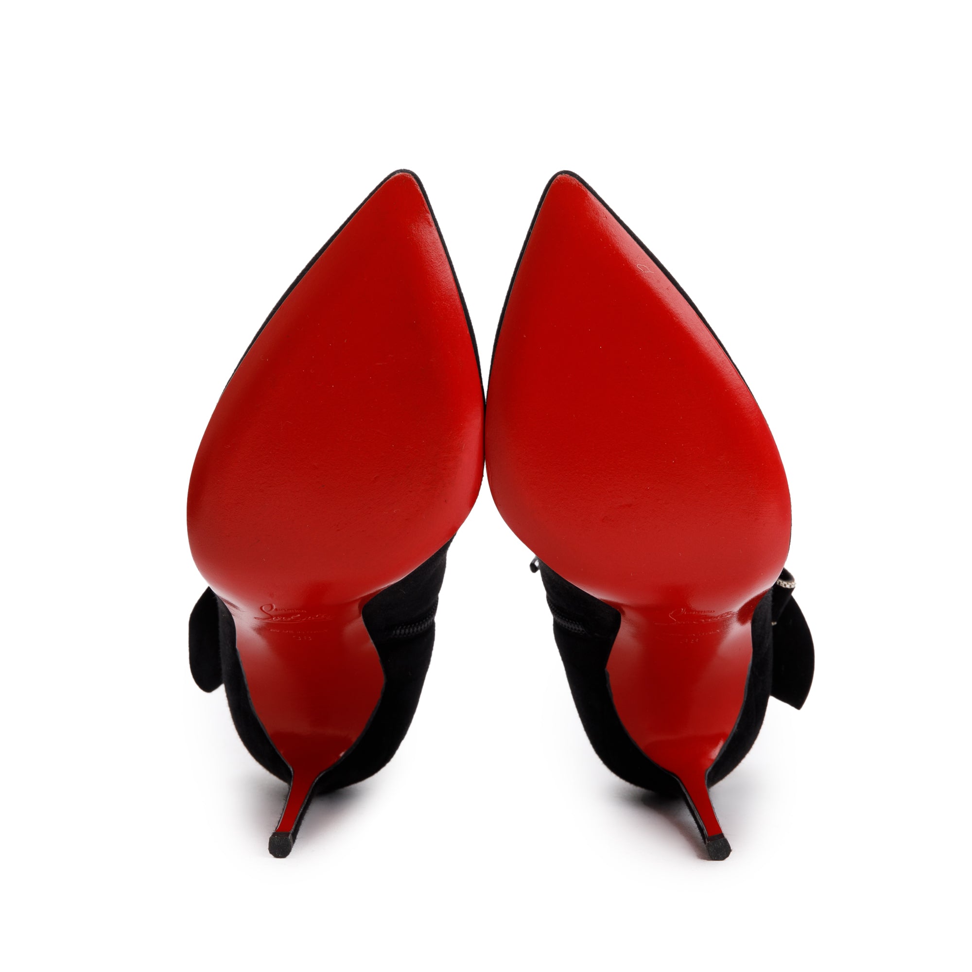 Black Suede Ruffle Embellished Ankle Boots, Size 38