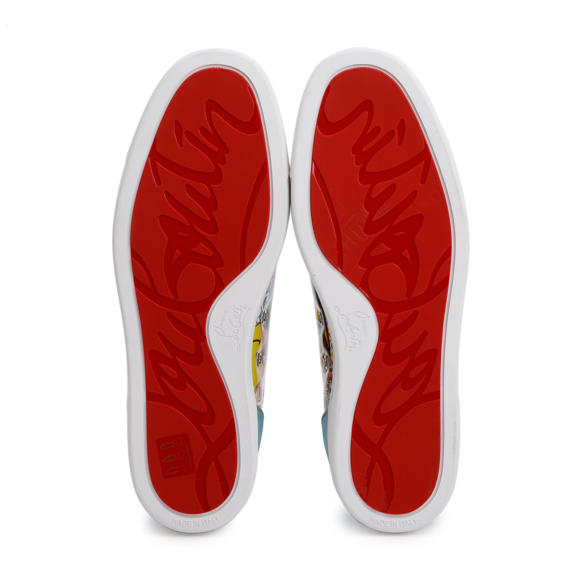 Multicolour Comic Print Patent Leather Louis Junior Spikes Orlato Low-Top Sneakers, Size 42 w/ Box