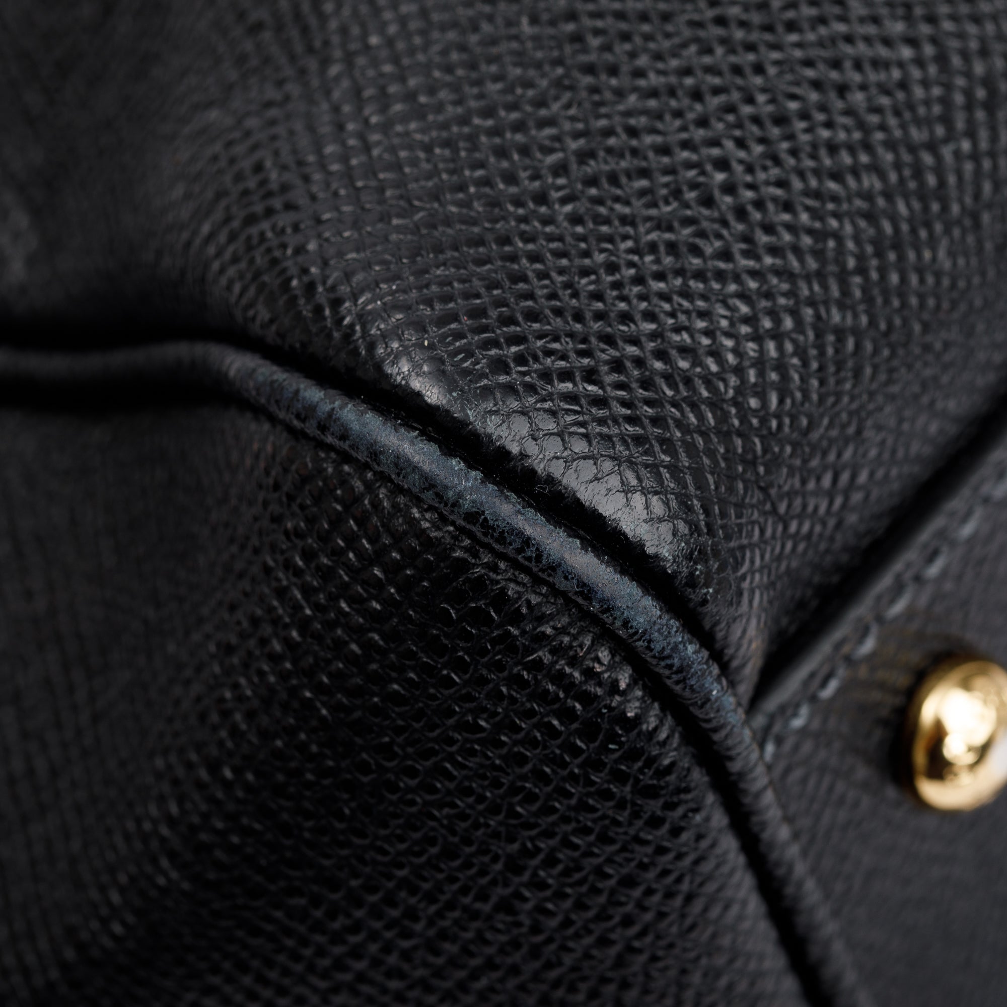 Condition: Good; slight scratches at hardware; slight creasing and wear at exterior leather; slight scuffing at exterior bottom corners; clean interior