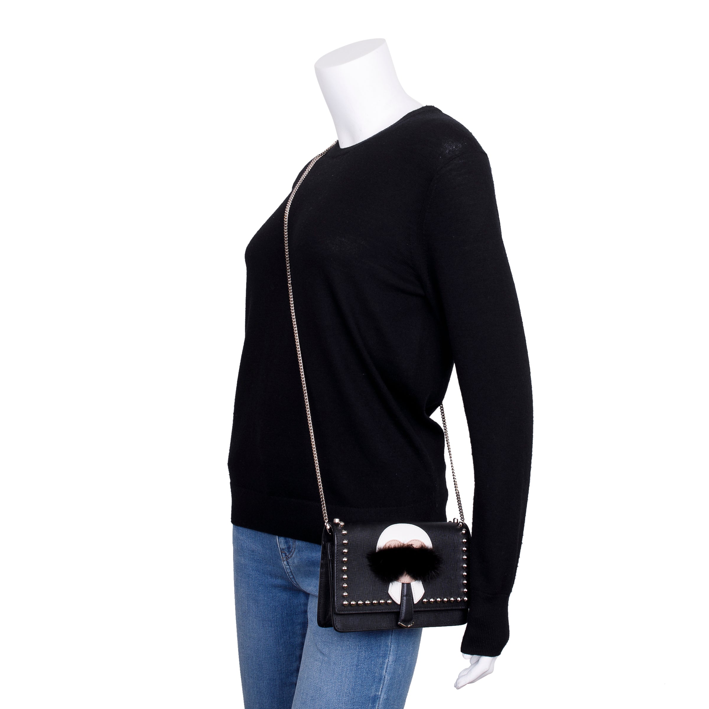 Black Calfskin Leather Studded Karlito Wallet on Chain w/ Box