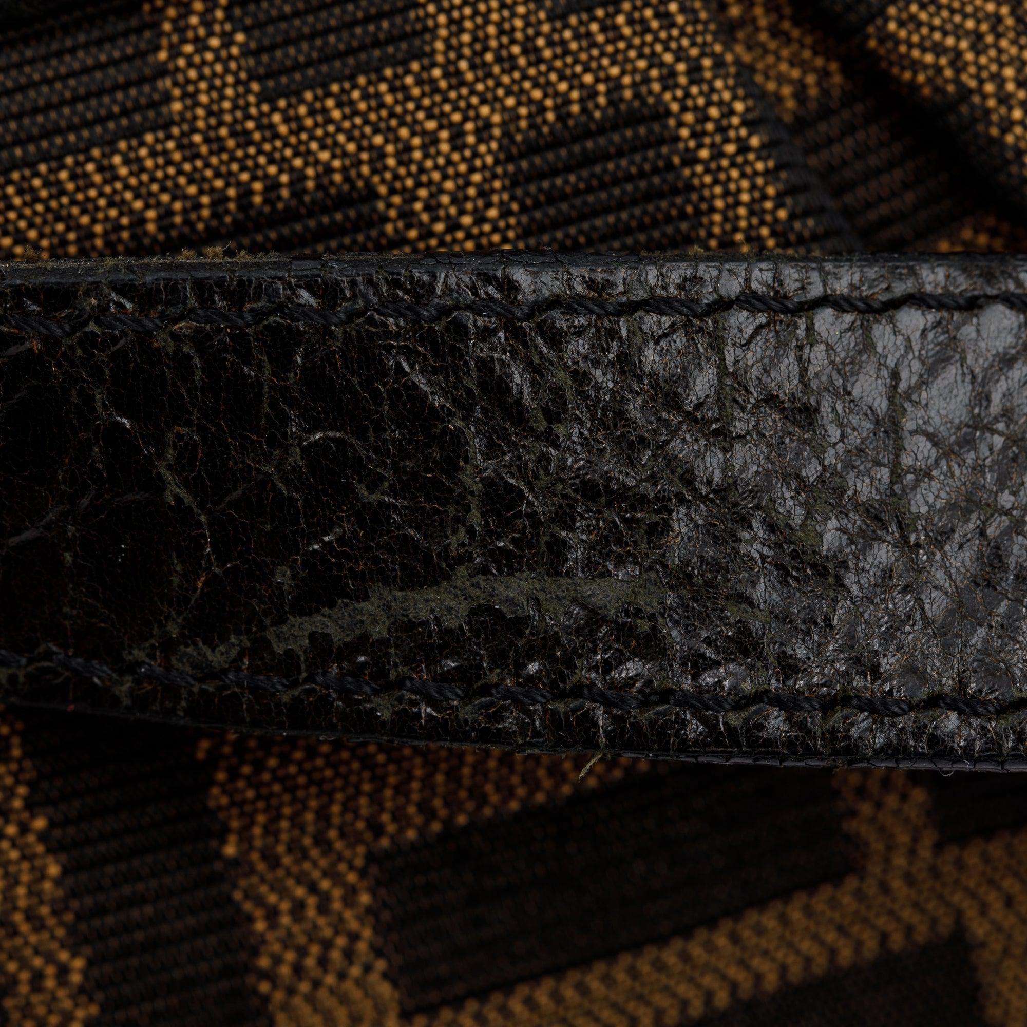 Condition: Very Good; light scuffing at exterior leather trim and shoulder strap; clean interior