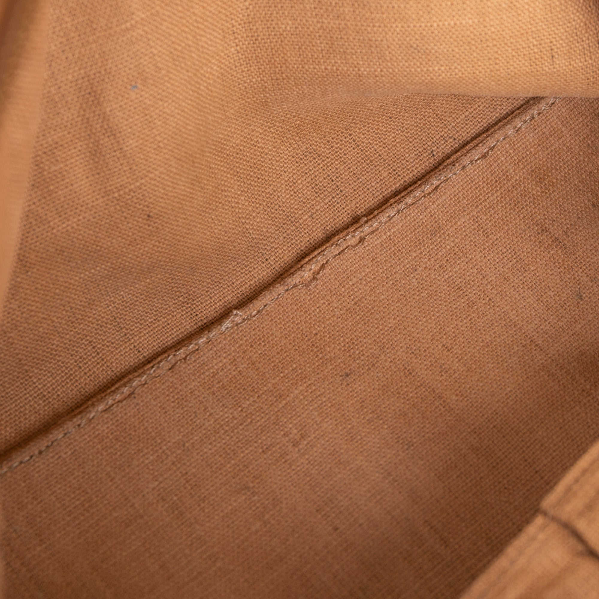 Condition: Good; slight scratches and tarnishing at hardware; minor scratches at leather trim; some marks at interior