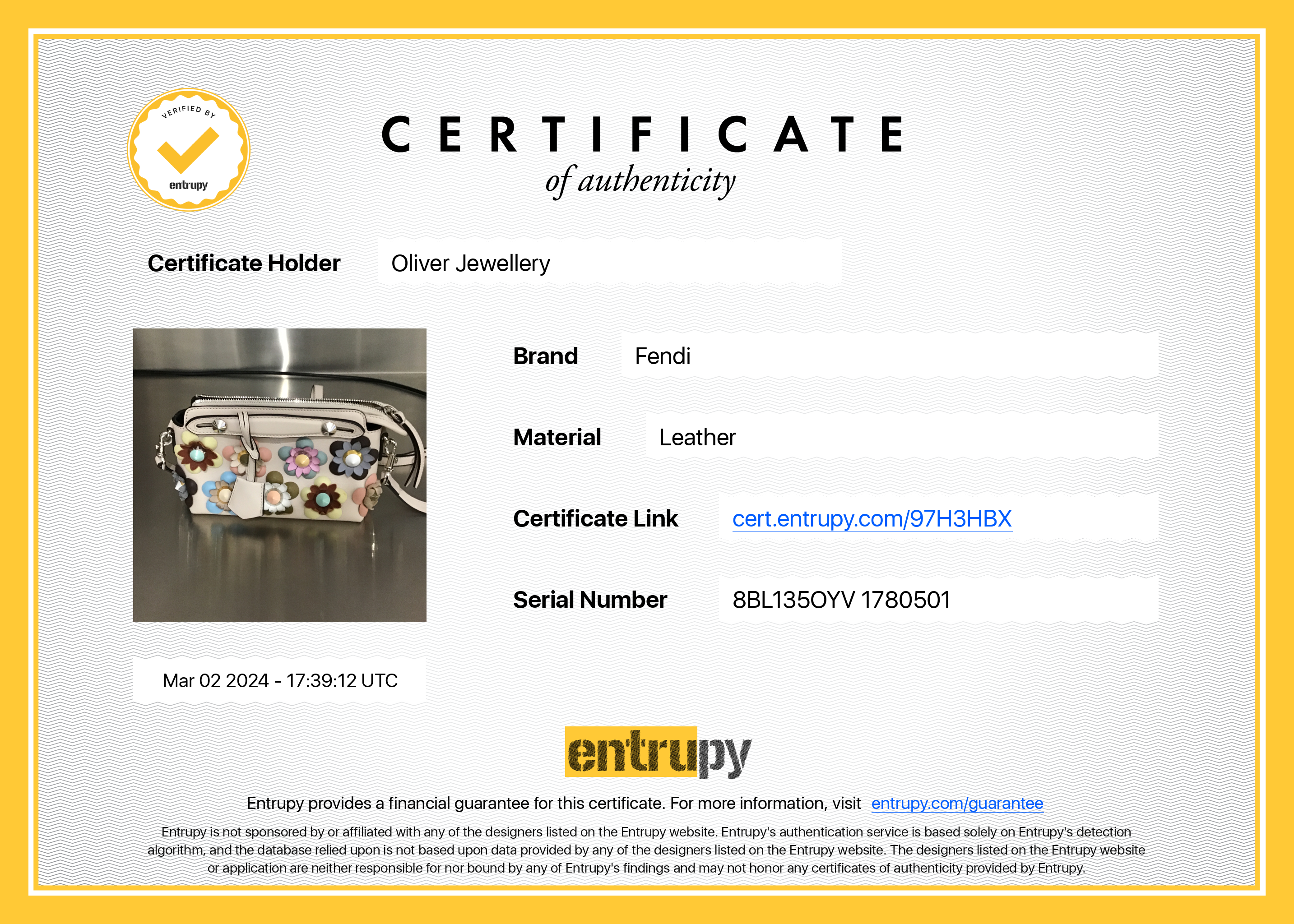 Dtachable Strap, Tags, Entrupy Certificate of Authenticity