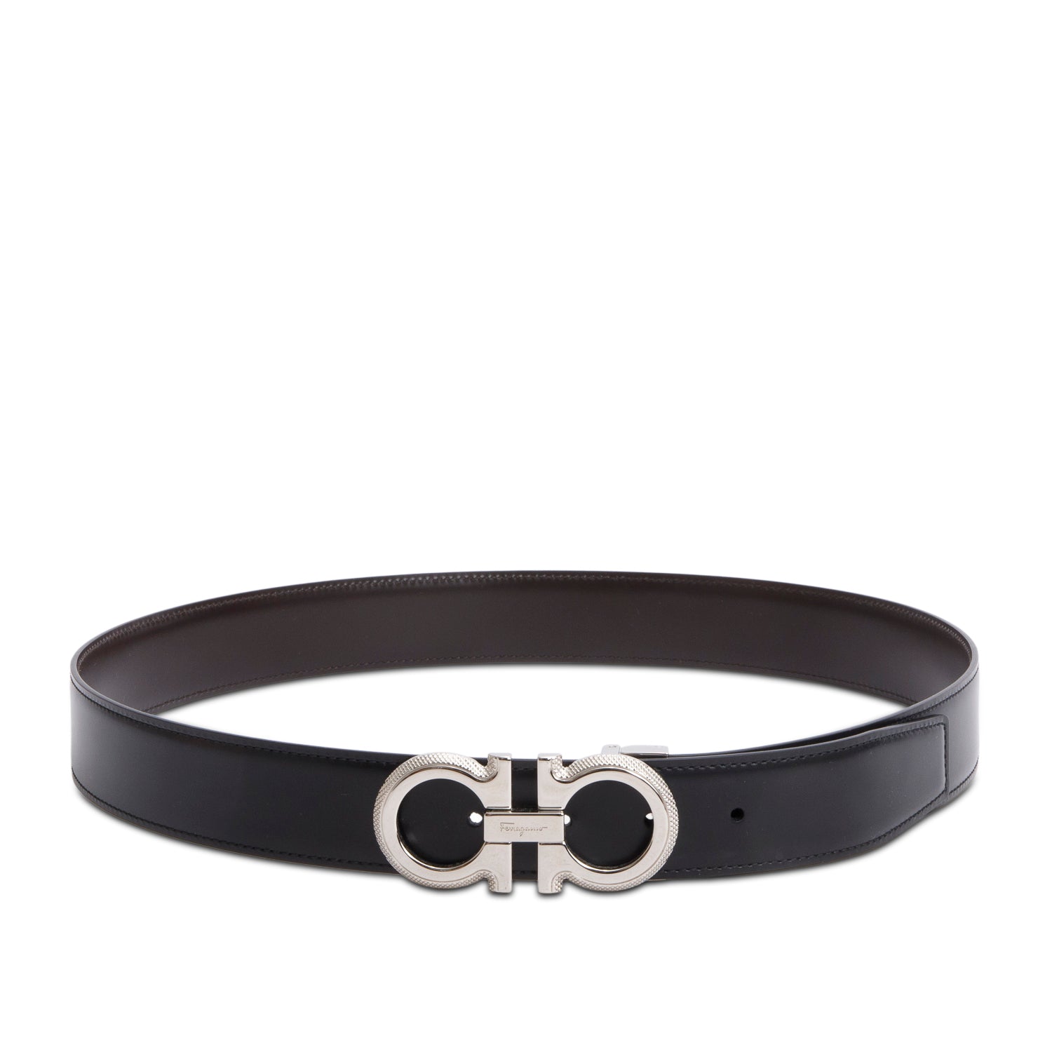 Black/Brown Smooth Leather Reversible and Adjustable Gancini Bel