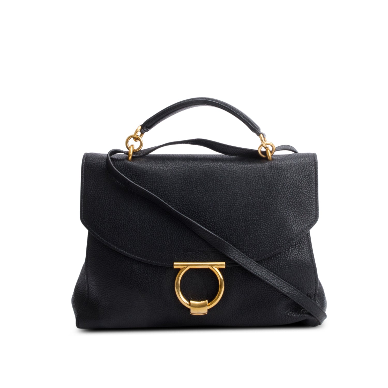 Black Calfskin Margot Top Handle Bag w/ Strap