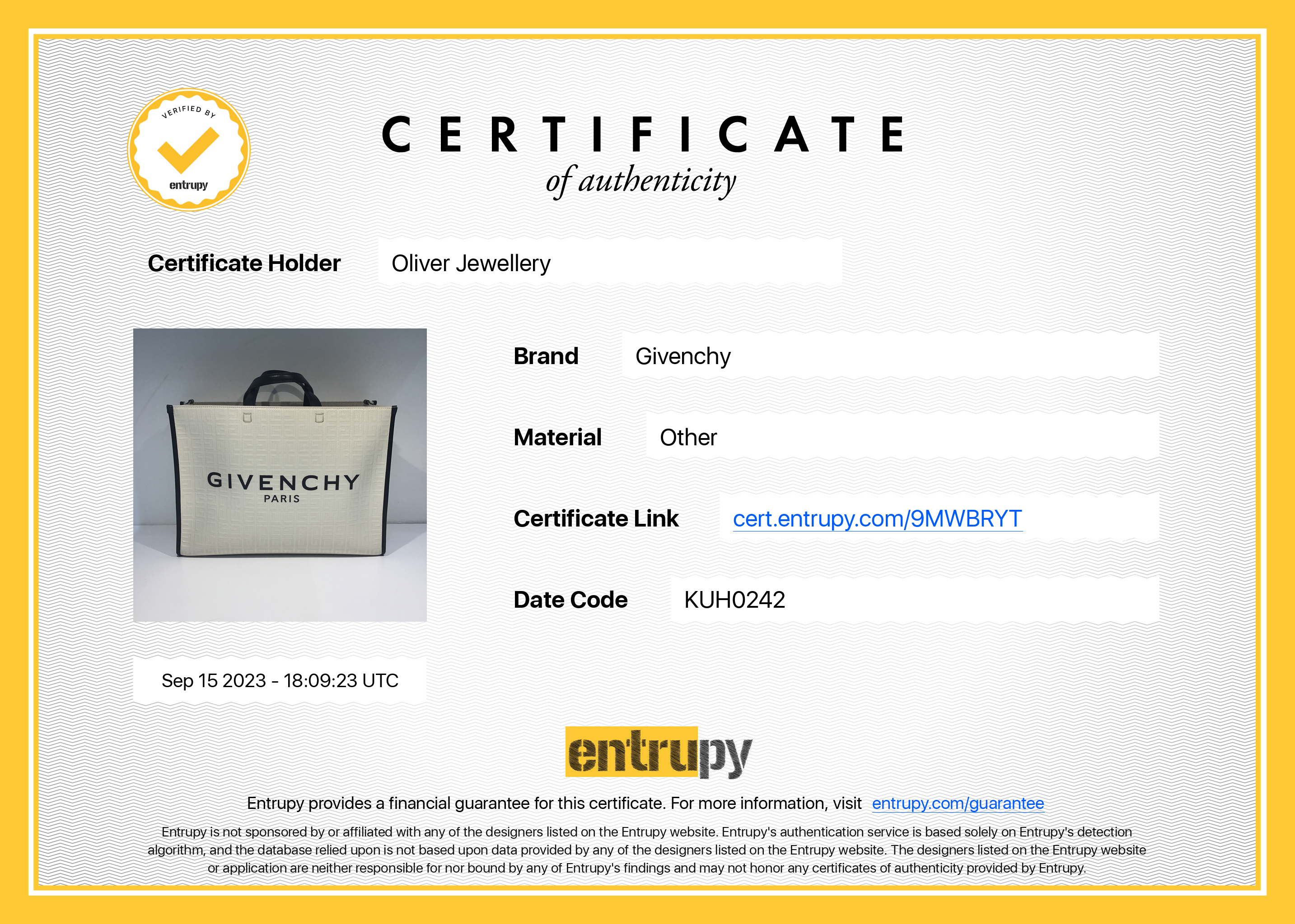 Dust Bag, Detachable Strap, Entrupy Certificate of Authenticity