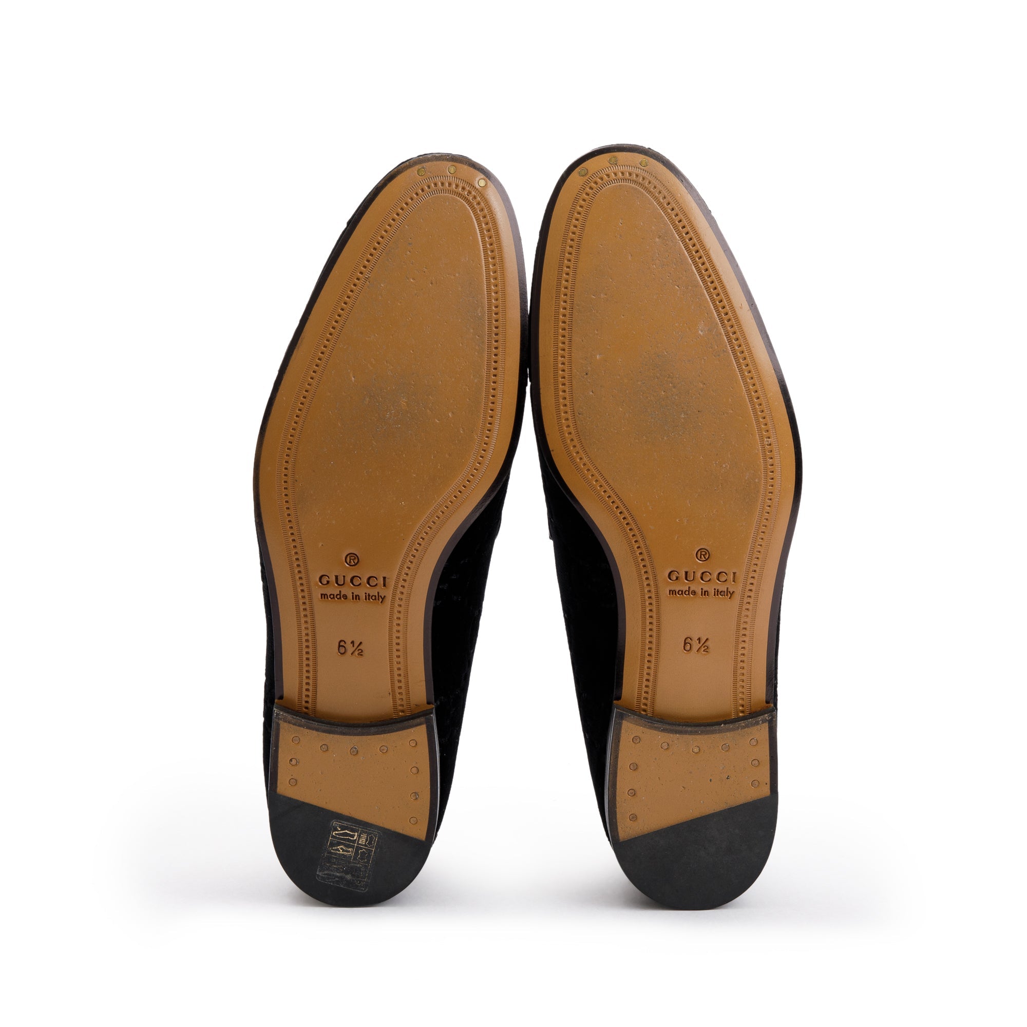 2020 Black GG Velvet Jordaan Horsebit Accent Loafers, Size 6.5 w/ Box & Receipt